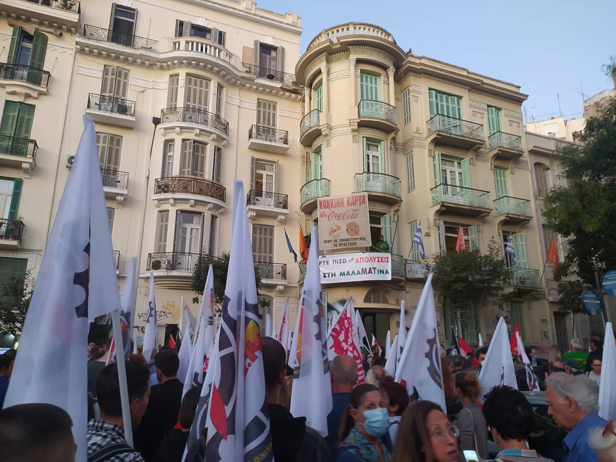 Πορεία αλληλεγγύης στους απεργούς εργαζόμενους της οινοποιείας Μαλαματίνα πραγματοποιήθηκε το απόγευμα της Παρασκευής στο κέντρο της Θεσσαλονίκης, με τη συμμετοχή σωματείων, συνδικάτων και οργανώσεων της πόλης.