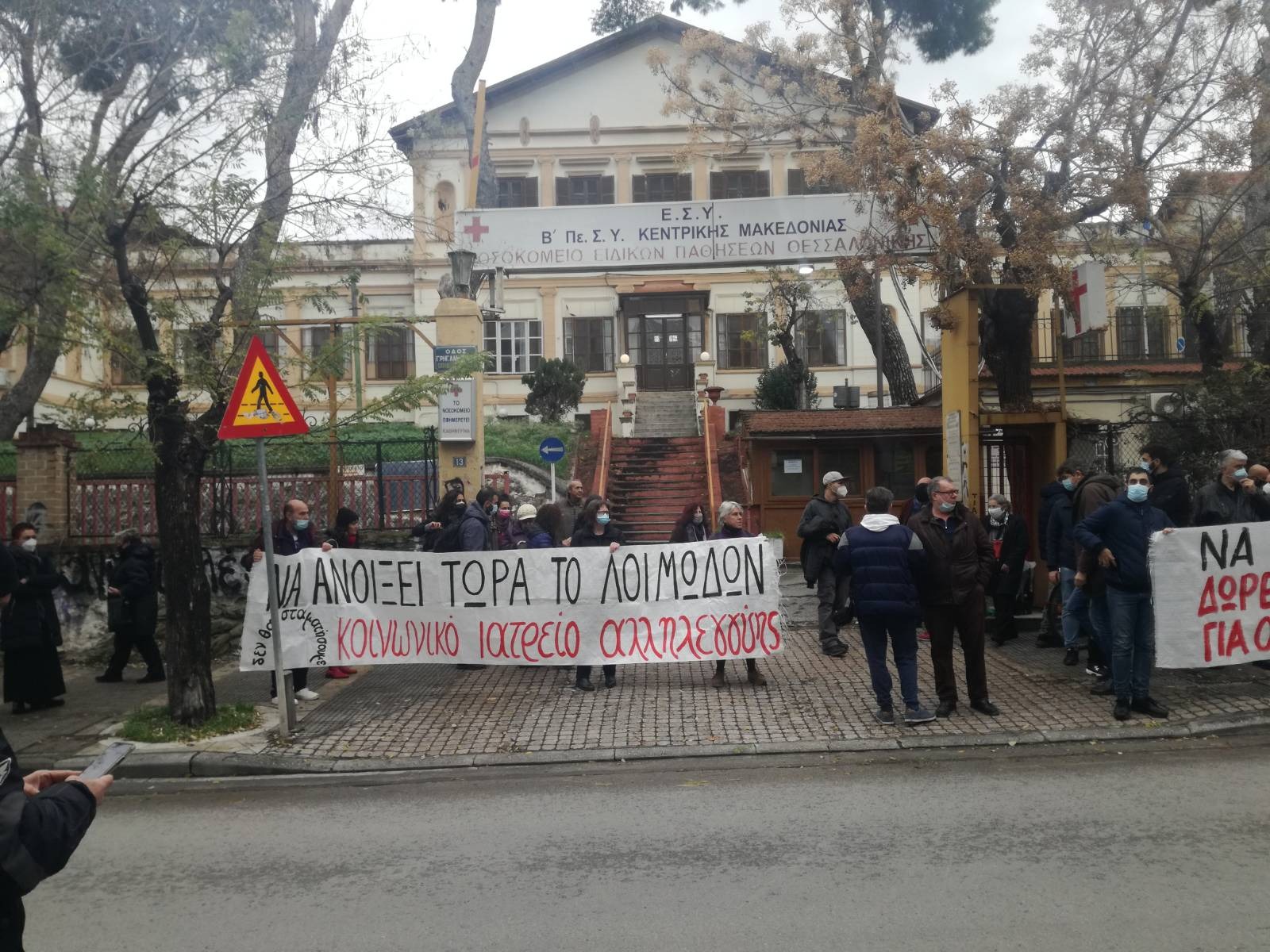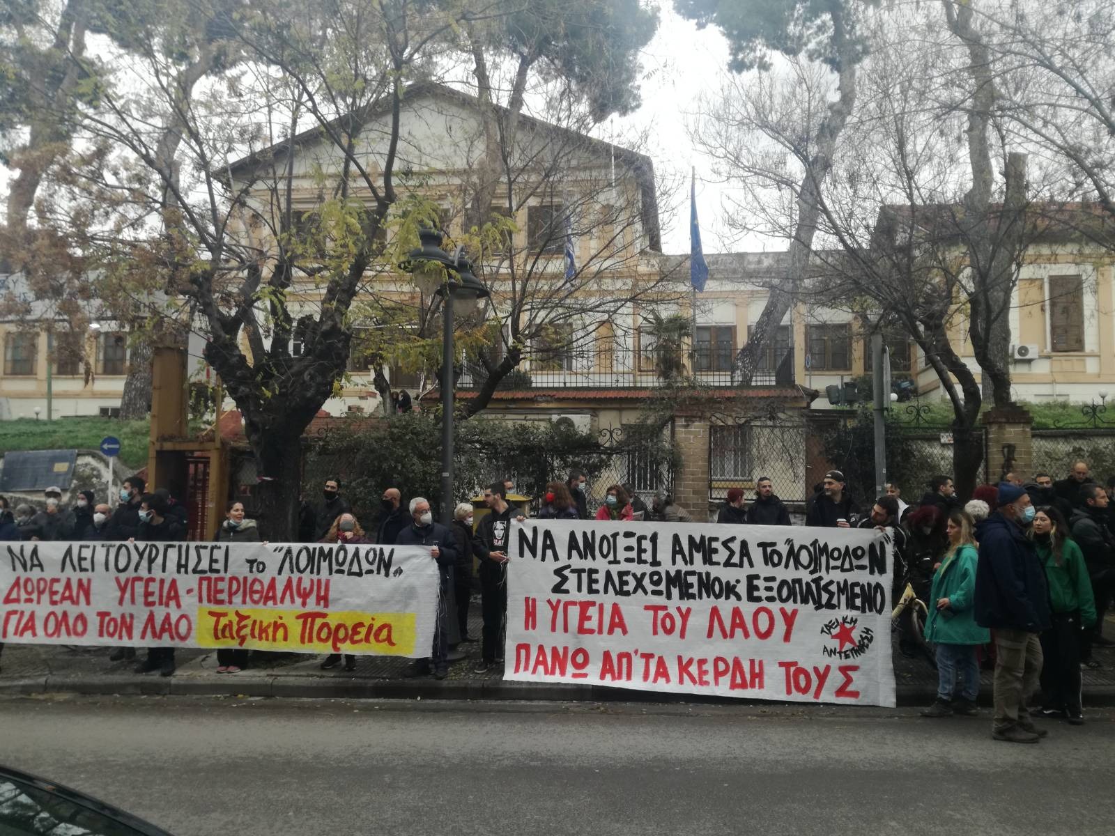 Με επιτυχία ολοκληρώθηκε η πορεία στην γειτονιά της Τούμπας για το άνοιγμα του νοσοκομείου «Λοιμωδών». Δεκάδες υγειονομικοί και κάτοικοι της περιοχής, μέλη του Κοινωνικού Ιατρείου Αλληλεγγύης Θεσσαλονίκης αλλά και άλλων πολιτικών και κοινωνικών συλλογικοτήτων συγκεντρώθηκαν αρχικά στο Πολιτιστικό Κέντρο Τούμπας ενώ αργότερα με διαδήλωση μέσω της Λαμπράκη κατέληξαν στο κλειστό νοσοκομείο όπου πραγματοποίησαν μαζική συνέλευση αποφασίζοντας νέες δράσεις για τις επόμενες μέρες.