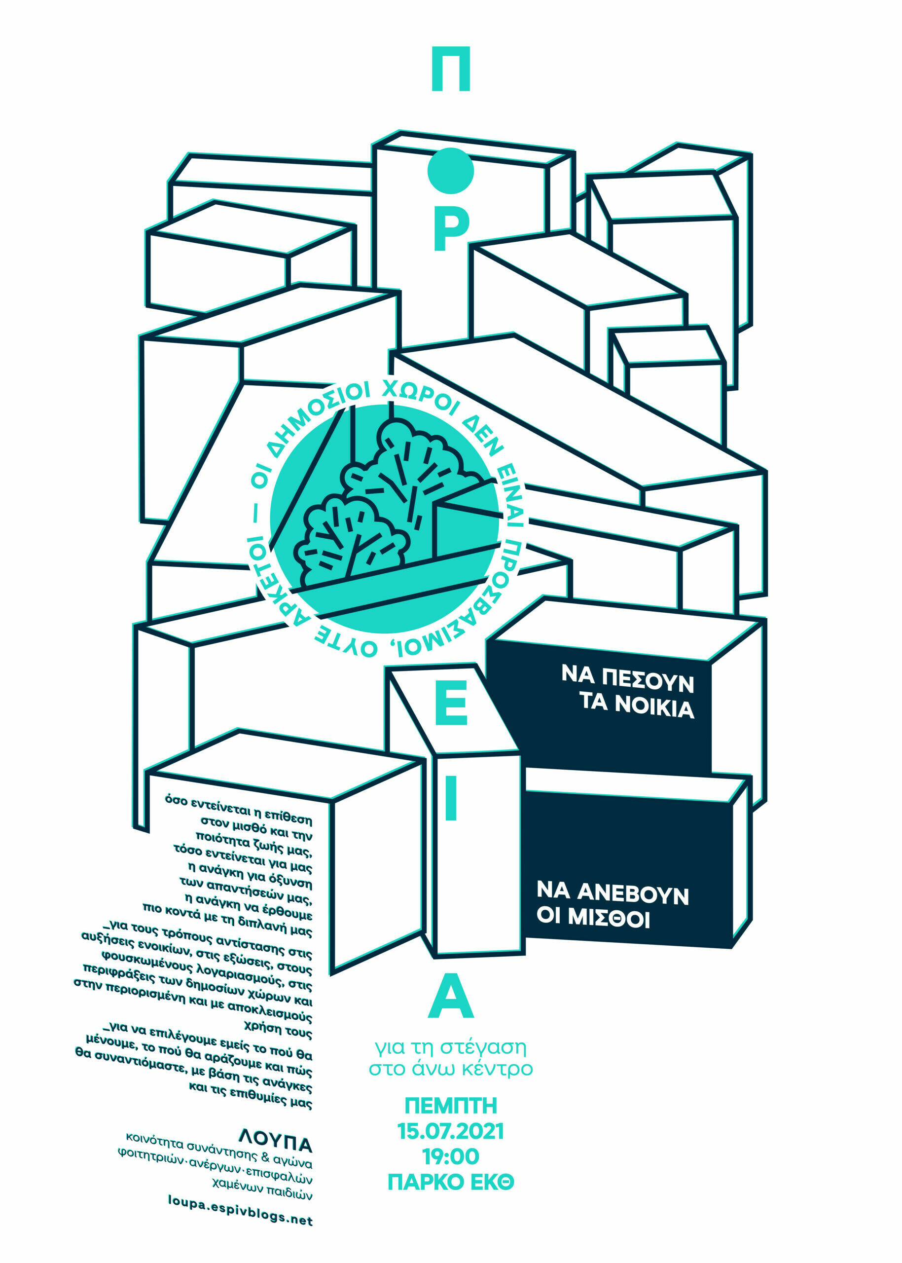Πορεία ενάντια στις εξώσεις ντόπιων και μεταναστών, την αύξηση των ενοικίων, τους αποκλεισμούς και τις περιφράξεις που πολλαπλασιάζονται στους δημόσιος χώρους της πόλης θα πραγματοποιηθεί την ερχόμενη Πέμπτη, 15 Ιουλίου στις 19.00 με σημείο συγκέντρωσης το Πάρκο του Εργατικού Κέντρου Θεσσαλονίκης.