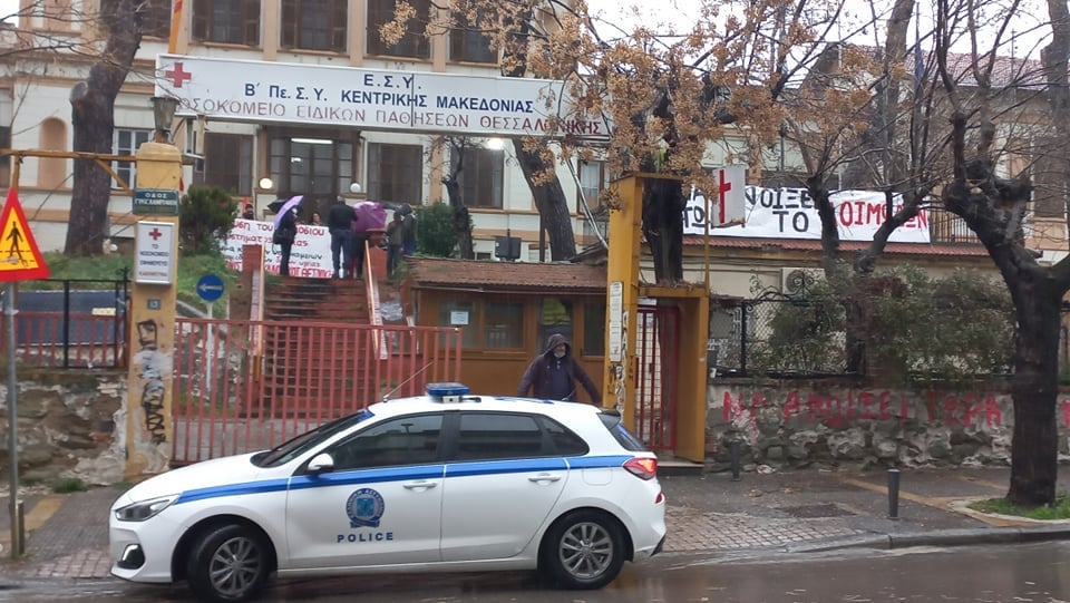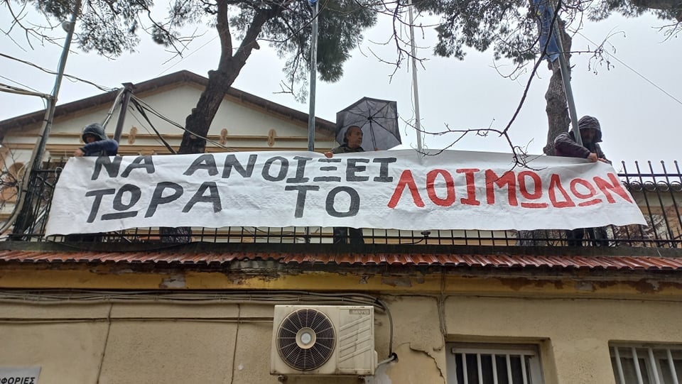 Παρά την συνεχή βροχή, μερικές δεκάδες πολιτών πραγματοποίησαν την κινητοποίηση-συμβολικό άνοιγμα του νοσοκομείου Λοιμωδών κρεμώντας μάλιστα πανό. Η προγραμματισμένη συγκέντρωση θα πραγματοποιηθεί σε νέα ημερομηνία.