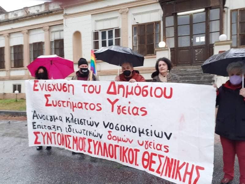 Παρά την συνεχή βροχή, μερικές δεκάδες πολιτών πραγματοποίησαν την κινητοποίηση-συμβολικό άνοιγμα του νοσοκομείου Λοιμωδών κρεμώντας μάλιστα πανό. Η προγραμματισμένη συγκέντρωση θα πραγματοποιηθεί σε νέα ημερομηνία.
