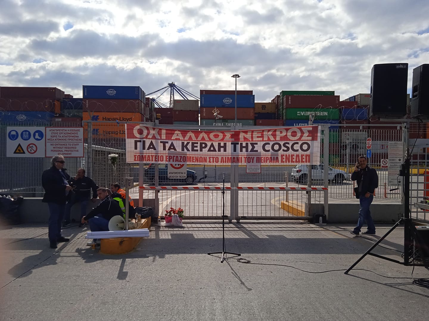Με μοτοπορεία στο υπουργείο Ναυτιλίας το πρωί της Παρασκευής 29 Οκτωβρίου ξεκίνησε η 4η συνεχόμενη ημέρα απεργίας των λιμενεργατών της Cosco στο λιμάνι του Πειραιά ζητώντας από το υπουργείο να διαλευκανθούν τα αίτια του πρόσφατου θανατηφόρου εργατικού ατυχήματος. Είναι ξεκάθαρο πλέον πως ο φρικτός θάνατος του Δημήτρη Δαγκλή από γερανοφέφυρα στην προβλήτα 2 στο Σταθμό Εμπορευματοκιβωτίων Πειραιά έχει πυροδοτήσει έναν αγώνα με καθολική συμμετοχή τον οποίο οι εργαζόμενοι δηλώνουν ότι «θα τον πάνε ως το τέλος».