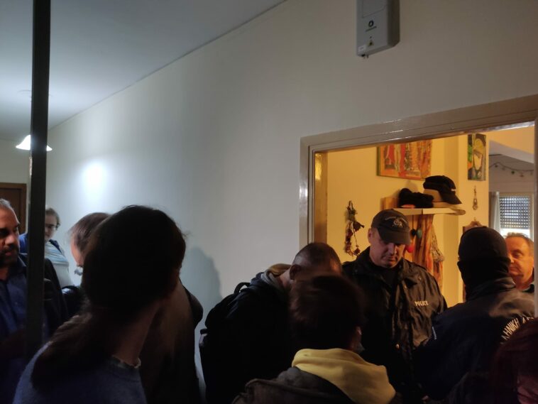 Μάλιστα, η μεταφορική που προσλήφθηκε για να αδειάσει με γρήγορες διαδικασίες το σπίτι αναγκάστηκε να αποχωρήσει μετά τις αντιδράσεις του κόσμου. Σύμφωνα με αλληλέγγυους που βρίσκονται στο σημείο η αστυνομία απείλησε πως αν ο κόσμος δεν αποχωρήσει θα έρθουν τα ΜΑΤ.