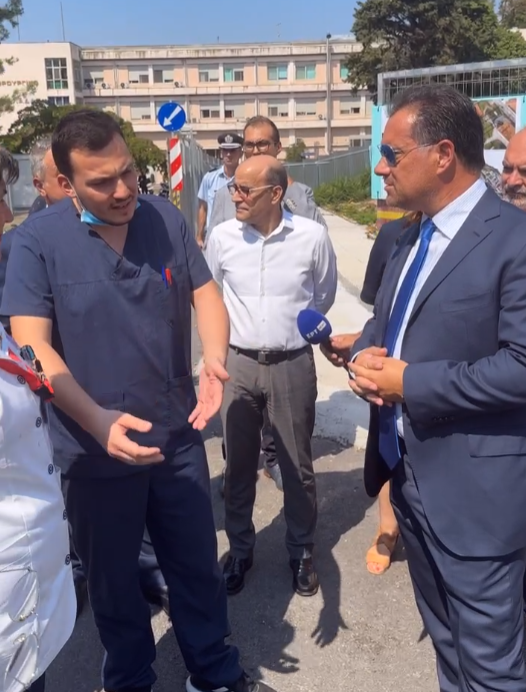 Ειδικότερα ο επισκέφθηκε το νοσοκομείο και όταν ο πρόεδρος της ΕΝΙΘ του μετέφερε την ανάγκη για μόνιμες προσλήψεις στο νοσοκομείο ο Άδ. Γεωργιάδης δήλωσε ότι «αυτά τα αριστερά τα βαριέμαι».