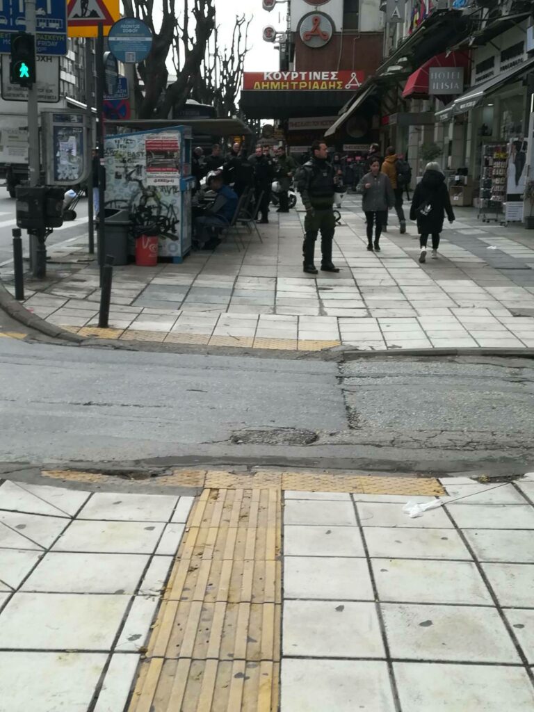 Σε απόσταση λίγων μέτρων από τη διαμαρτυρία δυο διμοιρίες ΜΑΤ, μηχανές της ομάδας ΔΙΑΣ και ασφαλίτες, βρίσκονταν σε επιφυλακή απέναντι στη συγκέντρωση μελών σωματείων συνταξιούχων, εργαζομένων και οργανώσεων.