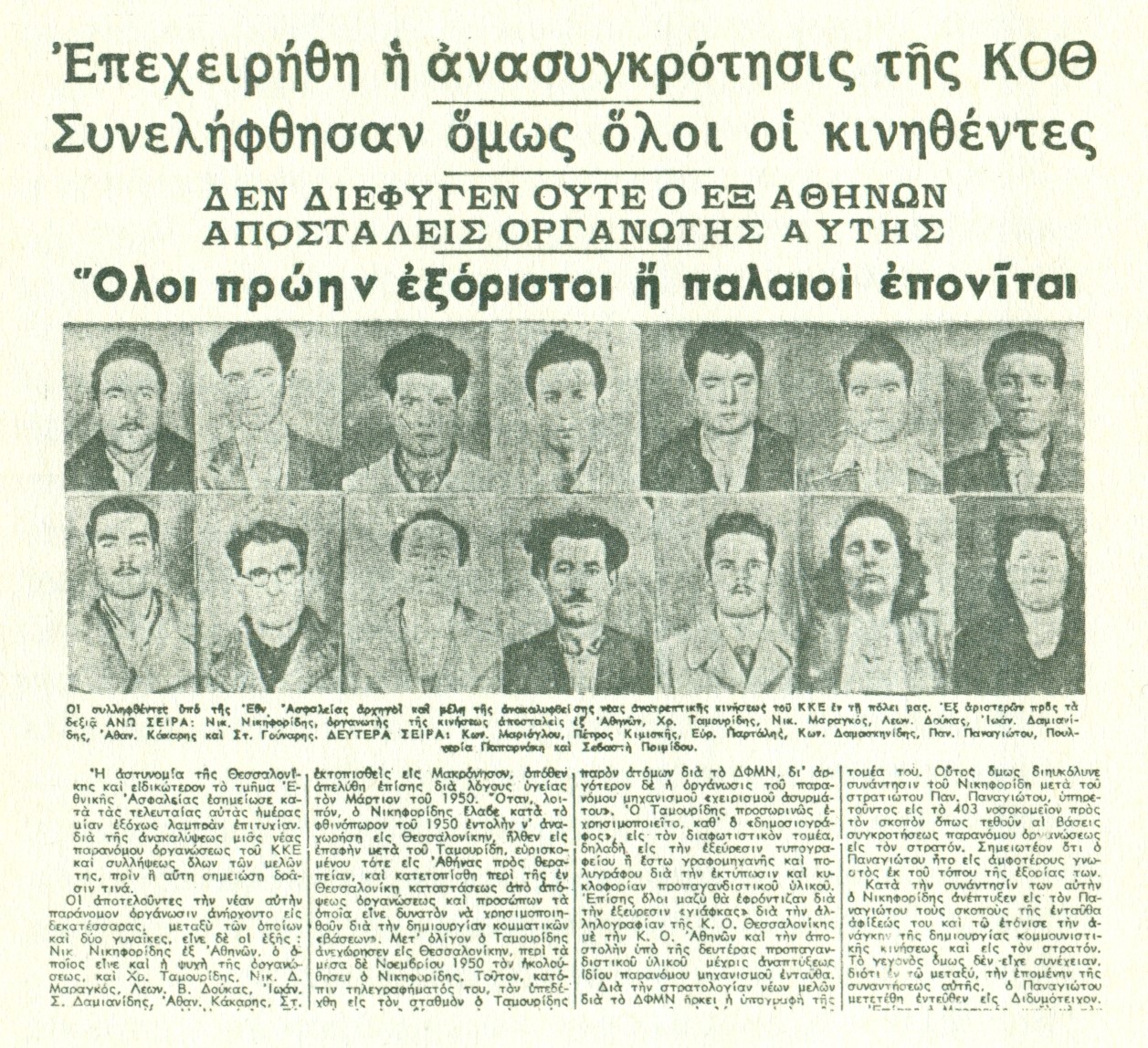 Τη διακήρυξη, είχαν υπογράψει περίπου 200.000.000 άτομα σε όλο τον κόσμο, ενώ υπογραφές συγκέντρωνε στην Αθήνα ανεμπόδιστα μία επιτροπή ειρήνης με επικεφαλής τον ποιητή Κώστα Βάρναλη. Μόλις όμως τα σαίνια της Γενικής Ασφάλειας Θεσσαλονίκης, με επικεφαλής τον συνταγματάρχη Νικόλαο Μουσχουντή, πληροφορούνται τη συγκέντρωση υπογραφών στην πρωτεύουσα της ελληνικής Μακεδονίας, οσμίζονται …. “κομμουνιστικό δάκτυλο” και “πράκτορες της Μόσχας”.
