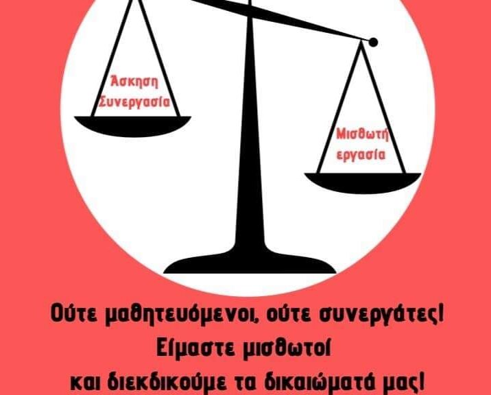 Είναι σε όλους μας γνωστό, ότι μετά την αποφοίτηση από τη Νομική Σχολή, πραγματοποιούμε την δεκαοκτάμηνη πρακτική άσκηση, καθώς αποτελεί προϋπόθεση για την είσοδό μας στο επάγγελμα. Η άσκηση αποτελεί μία μετέωρη κατάσταση, ενδεδυμένη με το μανδύα της “μαθητείας” και χαρακτηριζόμενη από την παντελή έλλειψη οποιουδήποτε προστατευτικού πλαισίου. Μαύρη εργασία, έλλειψη ωραρίου, απουσία προβλεπόμενου κατώτατου μισθού, βάρος ασφάλισης μετακυλιόμενο στους ασκούμενους, έλλειψη αδείας και αποδοχών αδείας, έλλειψη προστασίας σε περίπτωση απόλυσης, εκ νέου εξετάσεις για τη λήψη της άδειας άσκησης επαγγέλματος και επομένως υποτίμηση του πτυχίου μας και δημιουργία ενός φτηνού και αναλώσιμου επιστημονικού δυναμικού χωρίς εργασιακά δικαιώματα. Για να μην αναφερθούμε στην πρακτική πολλών δικηγόρων που αναθέτουν στους ασκούμενους τόσο νομικές αρμοδιότητες όσο και εργασίες άσχετες με την ουσία του επαγγέλματος, όπως γραμματειακή υποστήριξη, εξωτερικές εργασίες μη νομικής φύσης κ.α. εξοικονομώντας δαπάνες του γραφείου τους στις πλάτες των ασκούμενων δικηγόρων.