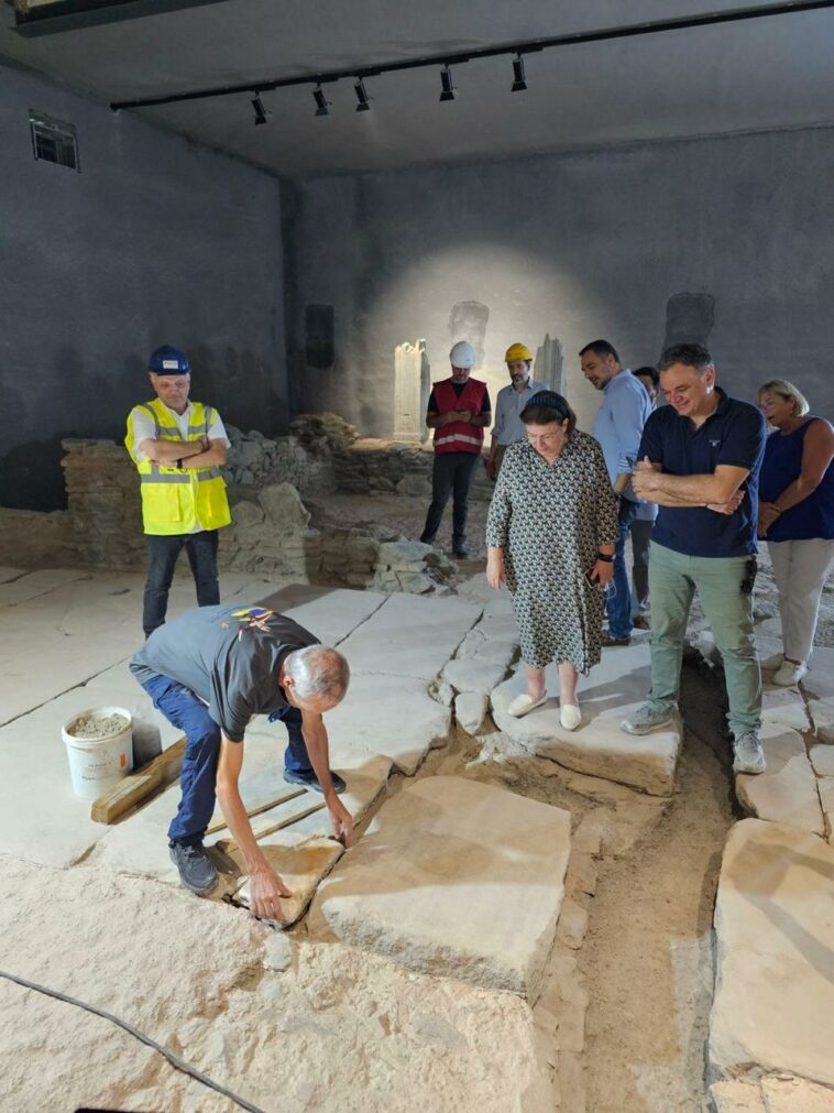 Αυτοψία στον σταθμό της Βενιζέλου στο Μετρό Θεσσαλονίκης πραγματοποίησε η υπουργός Πολιτισμού Λίνα Μενδώνη, παρακολουθώντας την διαδικασία επανατοποθέτησης μέρους των αποσπασμένων και τεμαχισμένων πολύτιμων αρχαίων ευρημάτων.