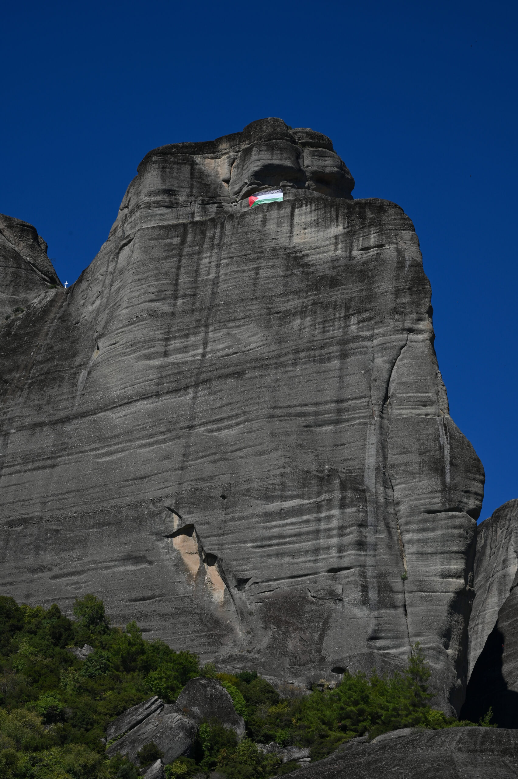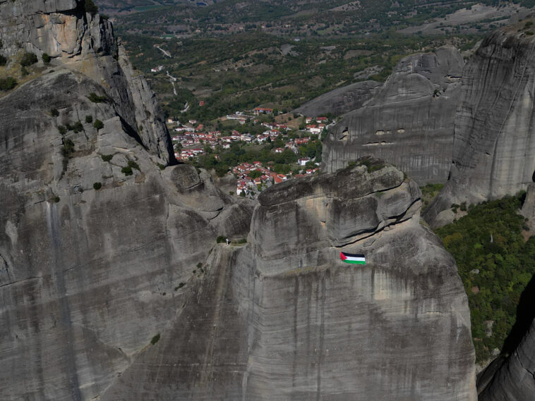 Σημαία της Παλαιστίνης στα Μετέωρα: «Σταματήστε τη γενοκτονία στη Γάζα»