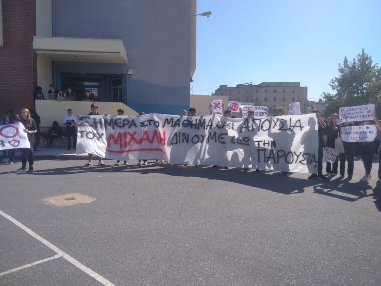 Οι μαθητές και οι μαθήτριες, αφού στάθηκαν για αρκετή ώρα στα τέσσερα σημεία της διασταύρωσης στο ύψος του σχολείου, κρέμασαν τα πανό στα κάγκελα, μοίρασαν ενημερωτικό υλικό στους οδηγούς και φώναξαν το όνομα του Μιχάλη. Να μην υπάρξει άλλο θύμα!.