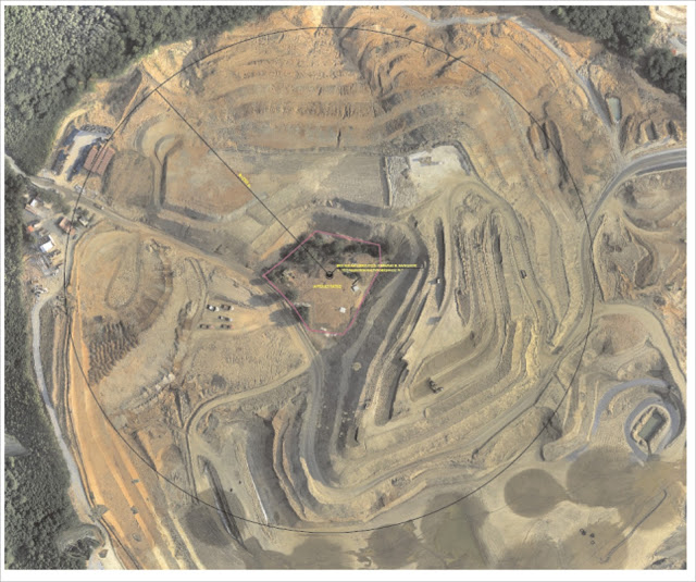 ΖΗΤΟΥΜΕ επίσης, από την Αρχαιολογική Υπηρεσία να επιληφθεί και για τα άλλα σημεία, εκτός του χώρου ανοιχτής εξόρυξης στη θέση Σκουριές, όπου είναι σε πλήρη εξέλιξη εργασίες για την κατασκευή εργοστασίου («βάσεις έδρασης μηχανολογικού εξοπλισμού») στη θέση Κόνιαρη, πλησίον των Σκουριών, καθώς και εργασίες αποψίλωσης και διαμόρφωσης χώρου για τη δημιουργία δύο φραγμάτων απόθεσης αποβλήτων στις θέσεις Καρατζά και Λοτσάνικο, σε πολύ κοντινή απόσταση (εικόνα 1). Στο πλαίσιο του υποέργου Σκουριών της εταιρίας «Ελληνικός Χρυσός Α.Ε.» έχουν ανεγερθεί κτίσματα, για τα οποία ερευνάται εάν διαθέτουν νόμιμη άδεια, κατασκευάζονται δρόμοι βαρέων οχημάτων και άλλα έργα υποδομής, σε σημεία για τα οποία η Αρχαιολογική Υπηρεσία δεν έχει επιληφθεί. Συμπληρωματικά σε αυτό ΖΗΤΟΥΜΕ να υπάρξει πλήρης και αναλυτική ενημέρωση για οποιαδήποτε άλλη ανακάλυψη στον ευρύτερο χώρο των Σκουριών, εντός του πεδίου εργασιών της εταιρίας “Ελληνικός Χρυσός Α.Ε.”, καθώς σε αποτύπωση της περιοχής, τον Αύγουστο 2015, έχει εντοπιστεί και άλλος χώρος αρχαιολογικού – ιστορικού ενδιαφέροντος, πλησίον του εργοστασίου εμπλουτισμού, [9] για τον οποίο δεν υπάρχει καμία γραπτή ή προφορική αναφορά εκ μέρους του αρμόδιου αρχαιολόγου ή της εποπτεύουσας αρχής. Σημειώνεται, ότι στην παρούσα φάση, οι εργασίες στις Σκουριές, γίνονται στο πλαίσιο προσωρινής αναστολής της εφαρμογής της απόφασης του υπουργού Παραγωγικής Ανασυγκρότησης, Περιβάλλοντος και Ενέργειας, της 19/8/2015, με αριθμό πρωτοκόλλου ΔΜΕΒΟ/Α/Φ.7.49.13/177642/1854 «Ανάκληση αποφάσεων έγκρισης τεχνικών μελετών των υποέργων «Μεταλλευτικές Εγκαταστάσεις Σκουριών» και «Μεταλλευτικές Εγκαταστάσεις Ολυμπιάδας» του έργου «Μεταλλευτικές – Μεταλλουργικές Εγκαταστάσεις Μεταλλείων Κασσάνδρας» της εταιρείας Ελληνικός Χρυσός Α.Ε.Μ.Β.Χ. στον Δήμο Αριστοτέλη, Περιφερειακής Ενότητας Χαλκιδικής. Όπως αναφέρεται στη συγκεκριμένη Υπουργική Απόφαση «Επειδή, με υπαιτιότητα της εταιρείας Ελληνικός Χρυσός Α.Ε.Μ.Β.Χ. δεν έχουν διενεργηθεί εντός των προβλεπόμενων προθεσμιών επιτόπιες ημιβιομηχανικές δοκιμές, όπως προβλέπεται και επιβάλλεται με τις εγκρίσεις των οικείων τεχνικών μελετών, όπως ανωτέρω αναλυτικά περιγράφεται και δεν έχει αποδειχθεί η δυνατότητα λυσιτελούς, πρόσφορης και περιβαλλοντικά ασφαλούς χρήσης στο συγκριμένο έργο – και υπό τις δεδομένες τοπικές συνθήκες της πυρομεταλλουργικής μεθόδου ακαριαίας τήξης (Flash Smelting), η οποία έχει προκριθεί ως ενδεδειγμένη. Επειδή, ενόψει όλων των ανωτέρω, συντρέχει σπουδαίος λόγος δημοσίου συμφέροντος… Ανακαλούμε την απόφαση με αριθμό Δ8-Α/Φ.7.49.13/2809/349/10-2-2012 περί έγκρισης τεχνικής μελέτης του υποέργου «Μεταλλευτικές εγκαταστάσεις Σκουριών» του έργου «Μεταλλευτικές Μεταλλουργικές Εγκαταστάσεις Μεταλλείων Κασσάνδρας» της εταιρείας Ελληνικός Χρυσός Α.Ε.Μ.Β.Χ. στο Δήμο Αριστοτέλη, Περιφερειακής Ενότητας Χαλκιδικής… Η παρούσα παύει να ισχύει εφόσον, σε διάστημα ενός έτους από την έκδοσή της και μετά την υποβολή εκ μέρους της εταιρείας Ελληνικός Χρυσός Α.Ε.Μ.Β.Χ. των απαιτούμενων δικαιολογητικών για την έκδοση κάθε αναγκαίας άδειας για την εγκατάσταση και λειτουργία της προβλεπόμενης ως άνω κατάλληλης ημιβιομηχανικής μονάδας επί τόπου του έργου (συμπεριλαμβανομένης και κάθε αναγκαίας άδειας για την εξαγωγή του αναγκαίου συμπυκνώματος), διαπιστωθεί ότι πληρώθηκαν οι τεθέντες υπέρ του 