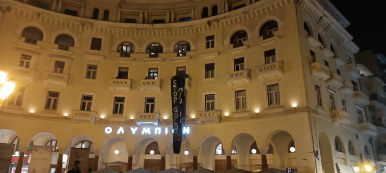 Παρέμβαση ενάντια στις εξορύξεις χρυσού-χαλκού στις Σκουριές και την Χαλκιδικη αλλά και ενάντια στην μεταφορά χιλιάδων τόνων τοξικών της Eldorado Gold από το λιμάνι της Θεσσαλονίκης πραγματοποίησαν μέλη των Επιτροπών Αγώνα, μετά το τέλος της ταινίας «Το μέρος που κοιμόμασταν» σε σκηνοθεσία του Ματέους Βέρλε.