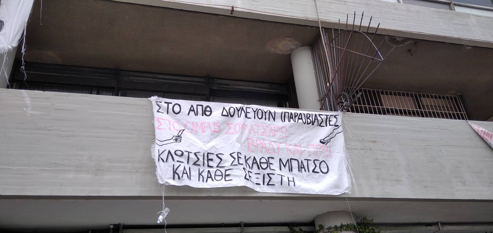 Εδώ και περίπου 15 μέρες, μετά και τη βίαιη αστυνομική καταστολή της 22ης Φλεβάρη, φοιτητές και φοιτήτριες στέκονται απέναντι σε ένα αστυνομοκρατούμενο πανεπιστήμιο. Παράλληλα βρίσκουν εκείνους τους δεσμούς αλληλεγγύης και διαλόγου για να ανοίξουν συζητήσεις που δεν θα μπορούσαν να γίνουν εν μέσω πανδημίας μέσα στα πανεπιστήμια λόγω αναστολής των δια ζώσης μαθημάτων: πως θέλουμε την εκπαίδευση, τι σημαίνει έμφυλη βία και πατριαρχία, υπάρχουν δικαιώματα, τι πολίτευμα είναι αυτό που ζούμε;