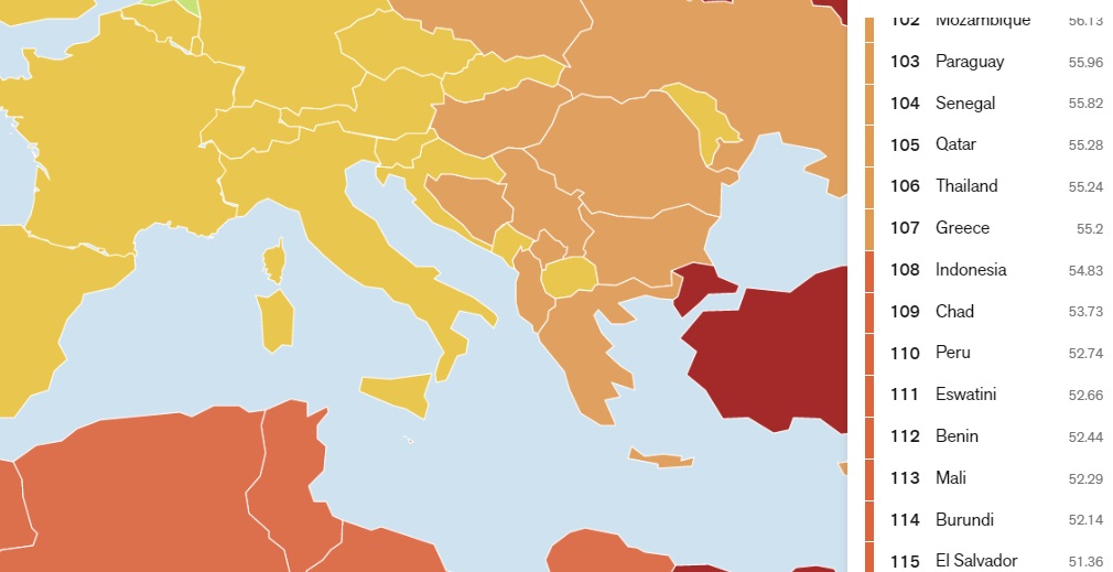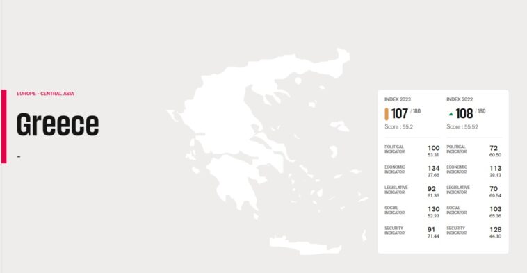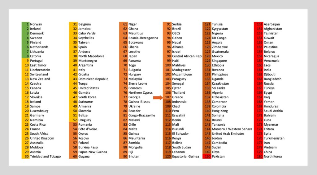 Αναλυτικά οι κατατάξεις της Ελλάδας στις 180 χώρες που εξετάστηκαν: