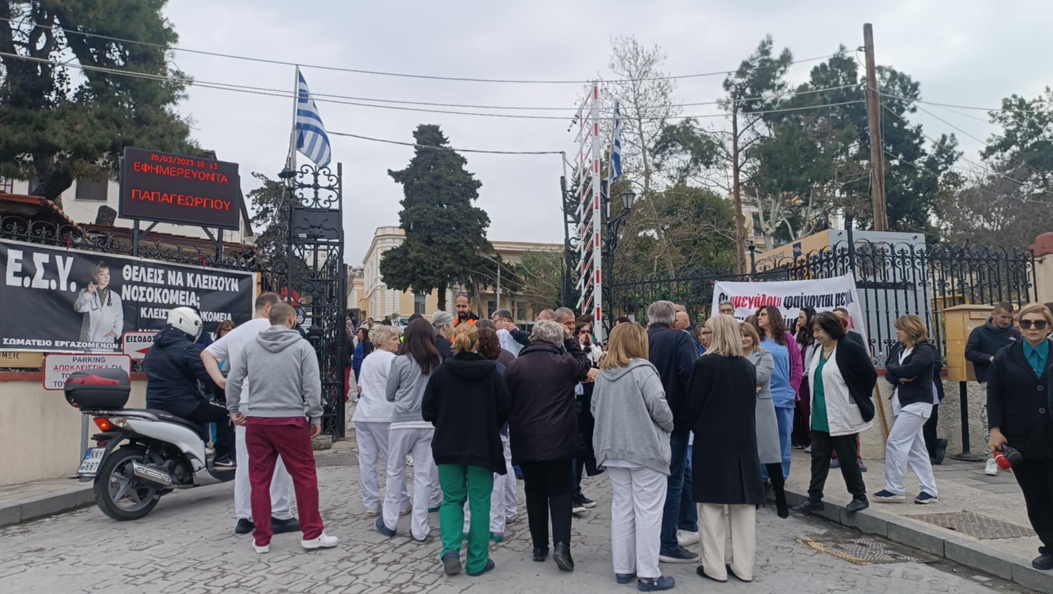 Παρέμβαση διαμαρτυρίας στο νοσοκομείο Αγ. Δημήτριος πραγματοποίησε το πρωί της Τετάρτης το σωματείο εργαζομένων διαμαρτυρόμενο για τις τραγικές ελλείψεις σε προσωπικό που καθιστούν πλέον τη λειτουργία του επισφαλή.