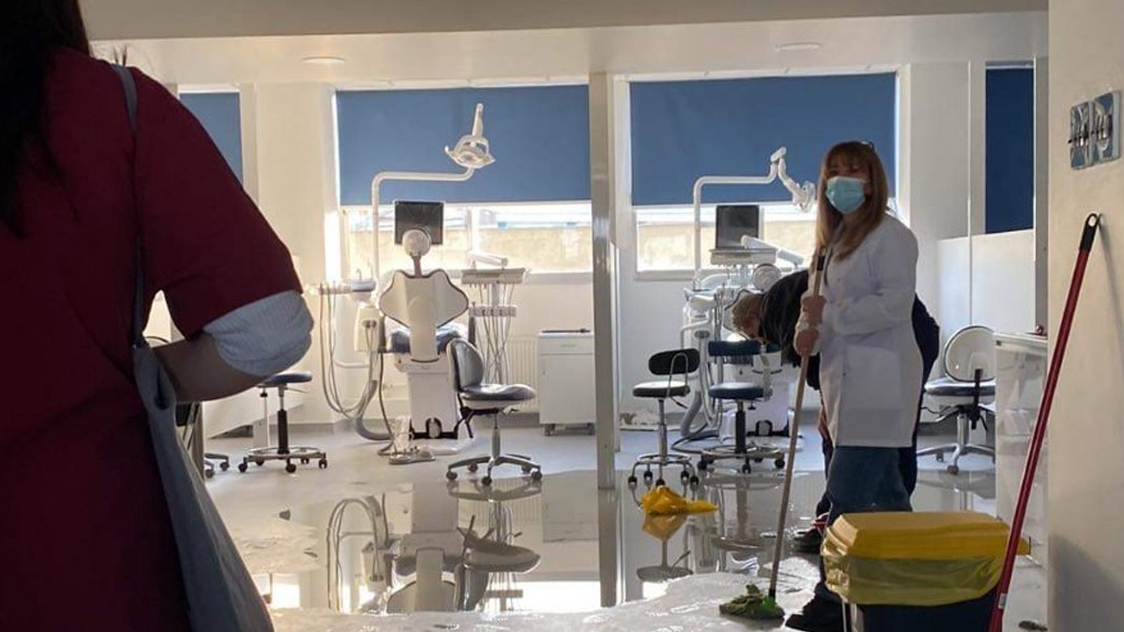 Έκπληκτοι οι φοιτητές και οι φοιτήτριες της Οδοντιατρικής είδαν το πρωί της Δευτέρας τους χώρους όπου επρόκειτο να κάνουν μάθημα να είναι γεμάτοι με νερά και μπάζα από την οροφή που… κατέρρευσε. Αιτία, η σοβαρή βλάβη σε καλοριφέρ του 4ου ορόφου κατά τη διάρκεια του Σαββατοκύριακου που σαν αποτέλεσμα είχε να πλημμυρίσουν τέσσερις όροφοι και να καταρρεύσει η οροφή.
