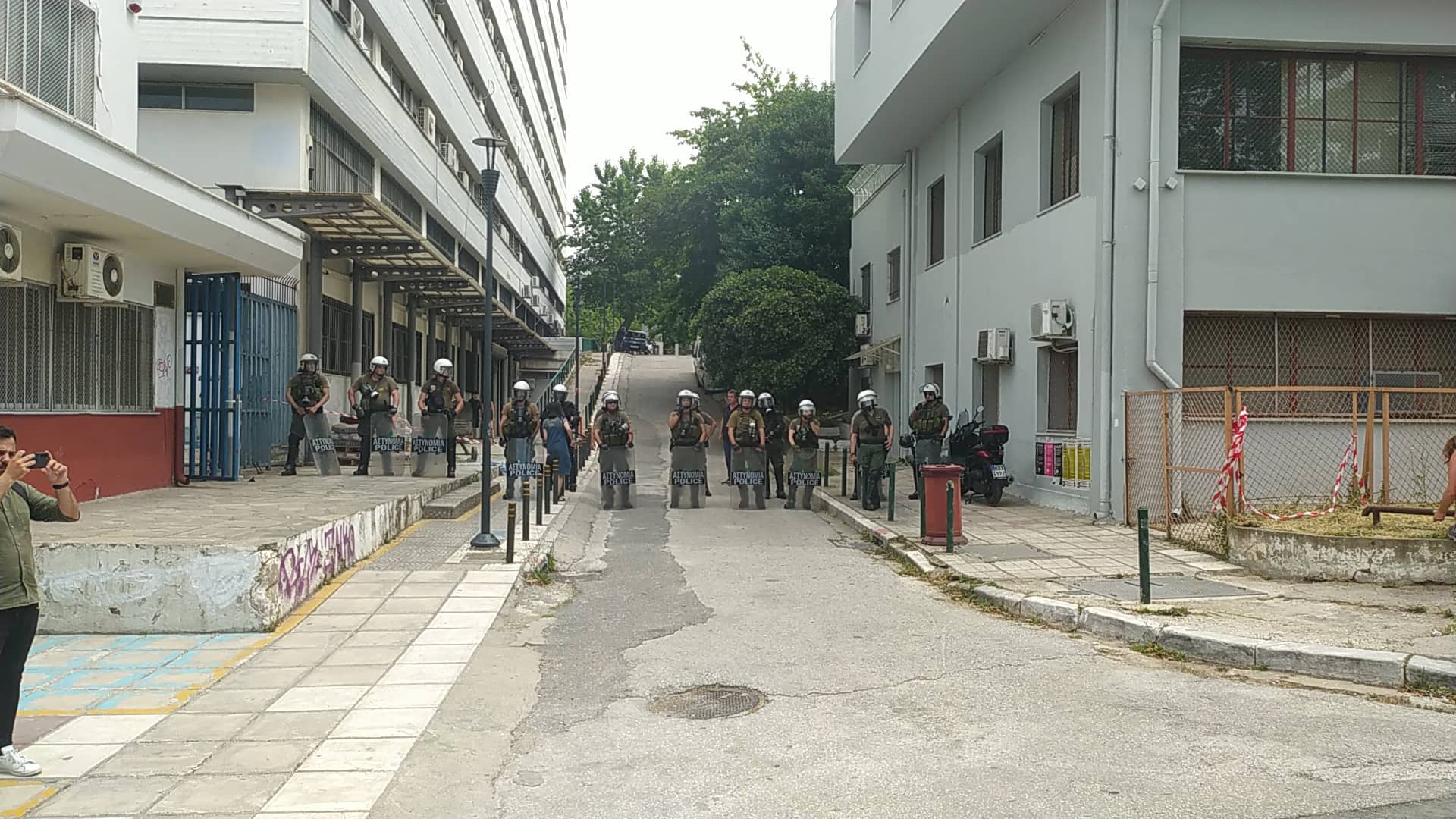 Υπενθυμίζεται πως παρουσία ΜΑΤ και ανδρών της ασφάλειας συνεχίζονται οι εργασίες για την δημιουργία της ενιαίας βιβλιοθήκης στο ισόγειο του Βιολογικού του ΑΠΘ.