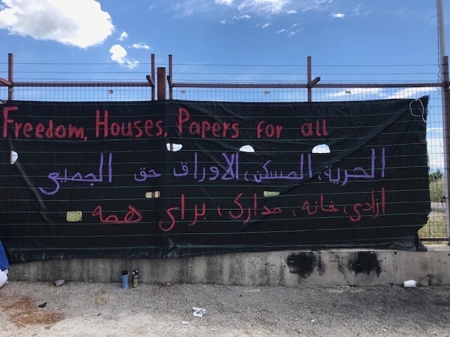 Όπως αναφέρεται και στη σελίδα της συνέλευσης Stop War on Migrants στο facebook, την Κυριακή 16/5 μέλη συλλογικοτήτων της πόλης πραγματοποίησαν συγκέντρωση στο camp των Διαβατών. Εκεί αναρτήθηκε ένα τρίγλωσσο πανό (αγγλικά, αραβικά, φαρσί) ενώ υπήρξε επικοινωνία με τους μετανάστες που ζουν στο camp. «Στην επίσκεψη είδαμε ότι η κατασκευή του τείχους γύρω από το camp (που χτίζεται καθ’ υπόδειξη του ΔΟΜ σε πλήρη σύμπλευση με το ελληνικό κράτος και την ΕΕ) γίνεται με πολύ γρήγορους ρυθμούς. Παραπάνω από το μισό camp είναι περιφραγμένο πλέον με το νέο τσιμεντένιο τείχος, το οποίο κόβει ακόμη και την οπτική επαφή με το εξωτερικό του camp. Οι μετανάστ(ρι)ες μας επικοινωνήσαν την ανησυχία τους σχετικά με τη νέα πραγματικότητα που διαμορφώνει αυτό το τείχος, καθώς και το καθεστώς ελέγχου εισόδου – εξόδου με κάρτα που αυτό συνεπάγεται» τονίζει η ανακοίνωση.