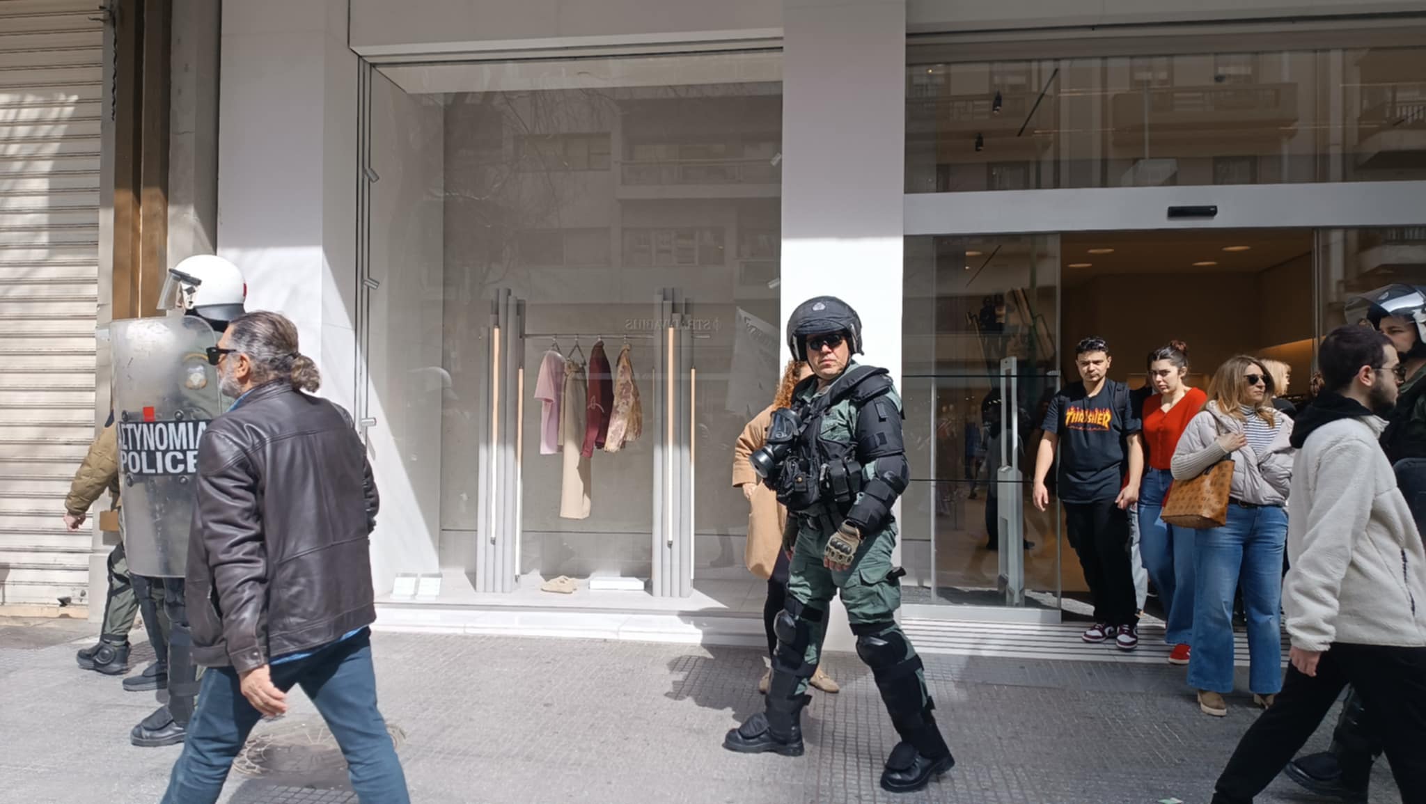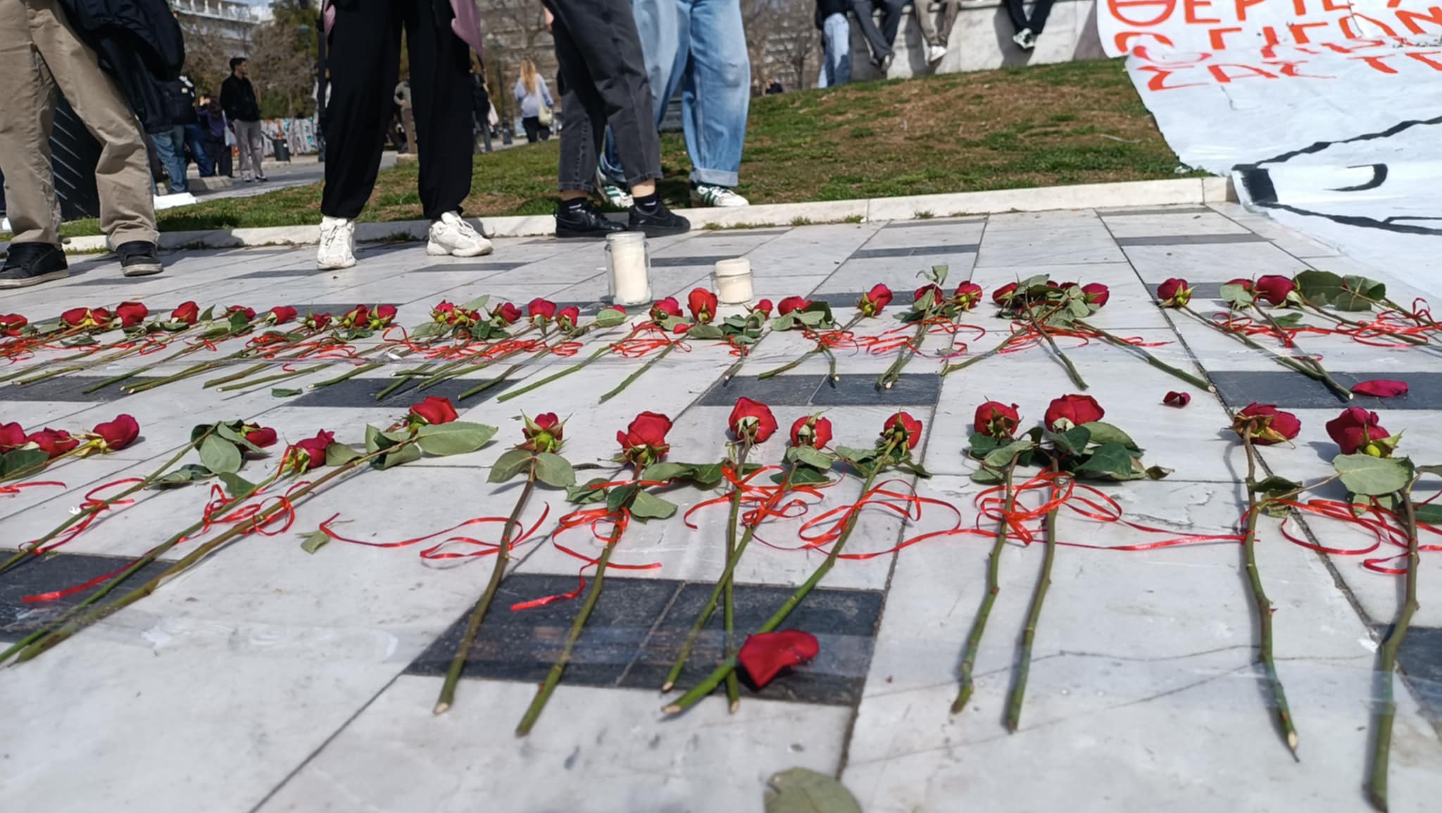 Η πορεία ξεκίνησε από το άγαλμα Βενιζέλου όπου φοιτητές-τριες άφησαν 57 τριαντάφυλλα στο πάτωμα στη μνήμη των 57 ανθρώπων που έχασαν τη ζωή τους στο έγκλημα των Τεμπών.