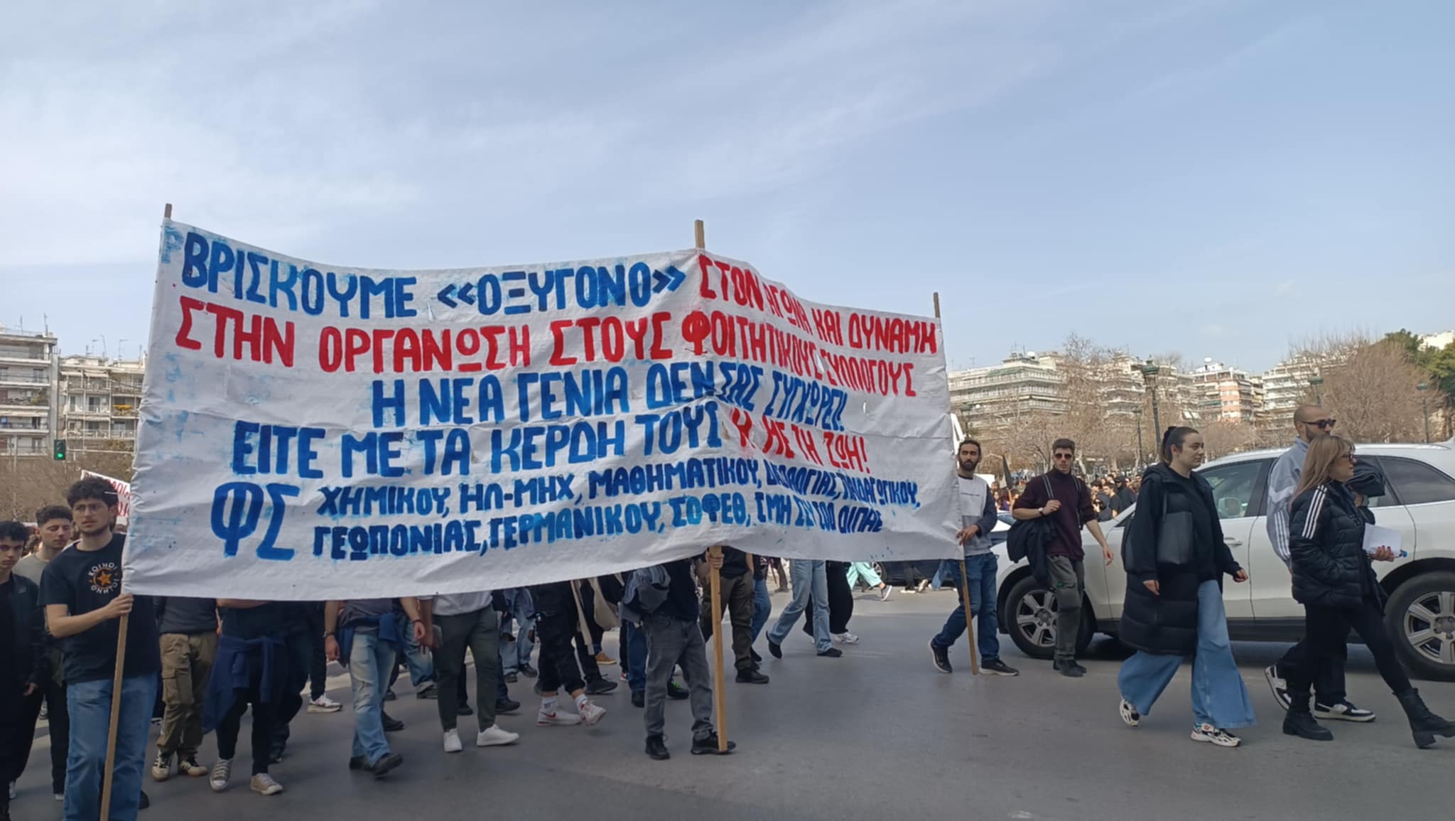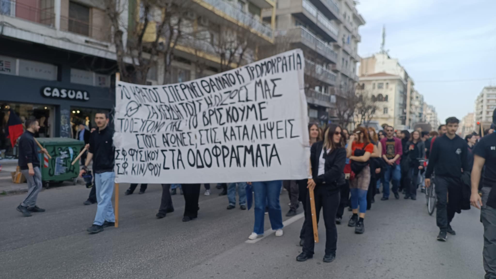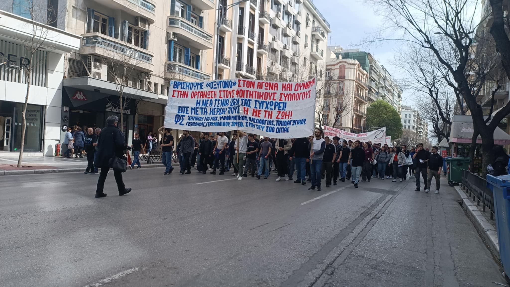 Στους δρόμους ξανά οι φοιτητικοί σύλλογοι της Θεσσαλονίκης ενάντια στη συγκάλυψη του εγκλήματος των Τεμπών
