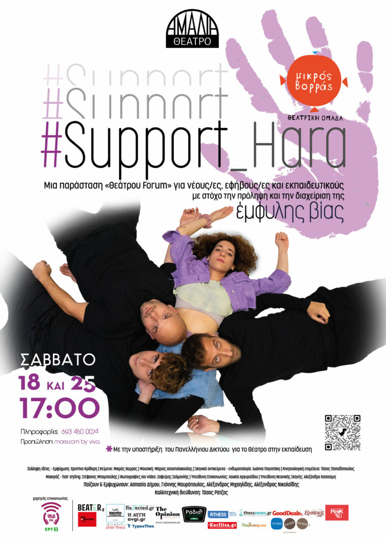 #Support_Hara – Η παράσταση Θεάτρου Forum που παρουσιάστηκε πρώτη φορά πέρυσι για περιορισμένο αριθμό παραστάσεων, επιστρέφει για να κινητοποιήσει, να ενημερώσει και να αναδείξει το φαινόμενο της έμφυλης βίας στο σχολικό περιβάλλον.
