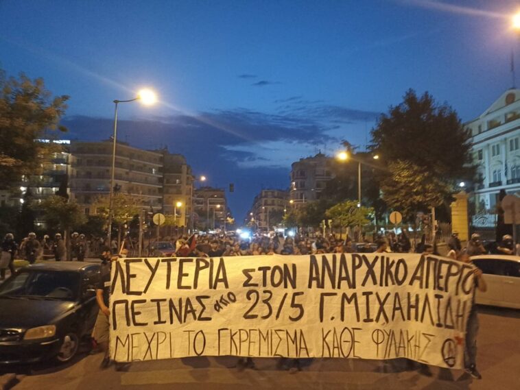 Σε συγκεντρώσεις και πορείες αλληλεγγύης προχωρούν συλλογικότητες που στηρίζουν το δίκαιο αίτημα του απεργού πείνας Γιάννη Μιχαηλίδη για την αποφυλάκιση του, το απόγευμα στις 19:00 με ταυτόχρονες συγκεντρώσεις σε Αθήνα, Θεσσαλονίκη, Πάτρα, Λάρισα και άλλες πόλεις.