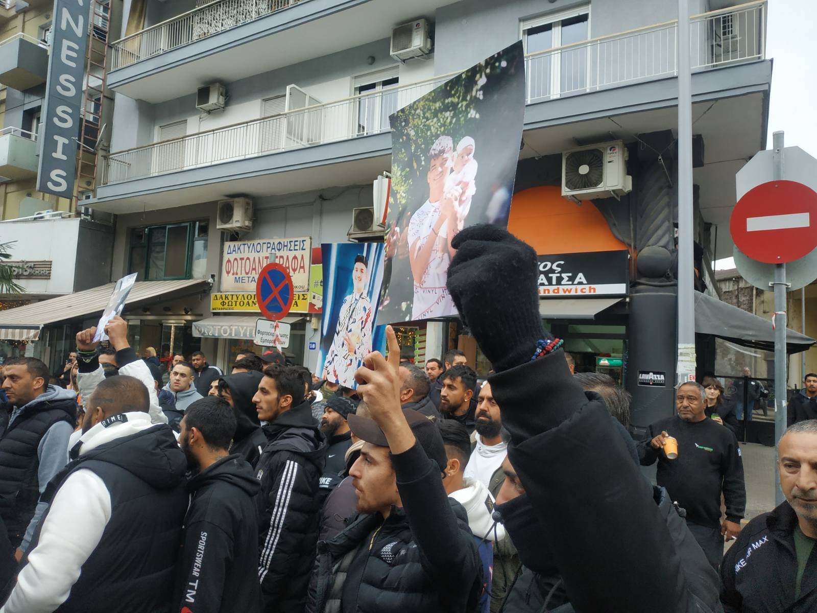 Δικαιοσύνη ζητούν τα μέλη των κοινοτήτων Ρομά που έχουν συγκεντρωθεί έξω από τα δικαστήρια πολλοί εκ των οποίων κρατούν φωτογραφία του Κώστα Φραγκούλη. Ανάμεσα στους συγκεντρωμένους βρίσκεται και ο πατέρας του παιδιού.