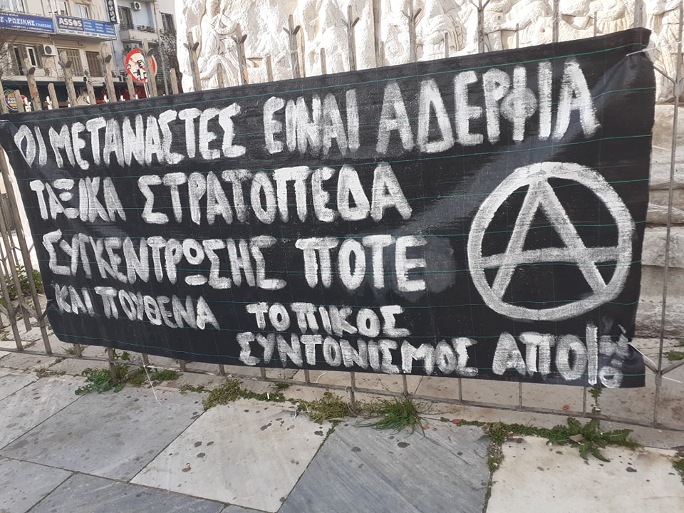 Η πολιτική του ελληνικού κράτους είναι μια πολιτική πολέμου, ενός πολέμου ενάντια στους μετανάστες που έχει κυρηχτεί πριν πολλά χρόνια και συνεχίζεται με αμείωτη ένταση μέχρι σήμερα. Ο φόβος για περεταίρω προλεταριοποίηση μεγάλου κομματιού της ντόπιας κοινωνίας την έχει οδηγήσει στο να υποστηρίζει είτε ένθερμα είτε σιωπηλά την πολιτική του ελληνικού κράτους, ξεχνώντας έτσι ότι οι πρακτικές ελέγχου της δραστηριότητας του πληθυσμού εφαρμόζονται πρώτα «σε αυτούς που περισσεύουν» και στα «περιθώρια» αλλά μετά από λίγο έρχονται και αποτελούν παγιωμένη κοινωνική συνθήκη (όποιος δεν μας πιστεύει ας κοιτάξει πόσο άλλαξε η ζωή του τα τελευταία 2 χρόνια ή μήπως δε θυμάται πώς ήταν τα μούτρα του δίχως μάσκα;)