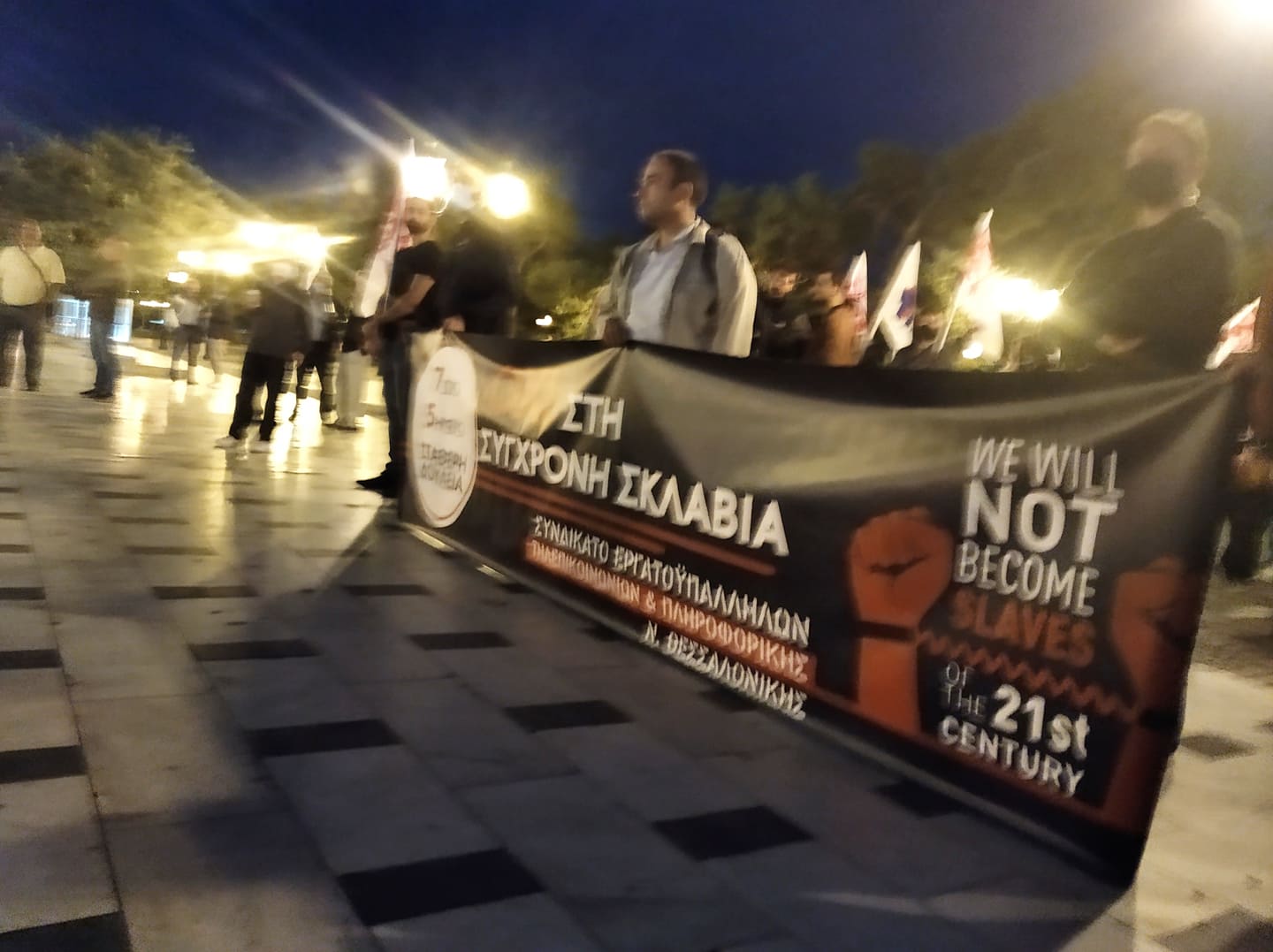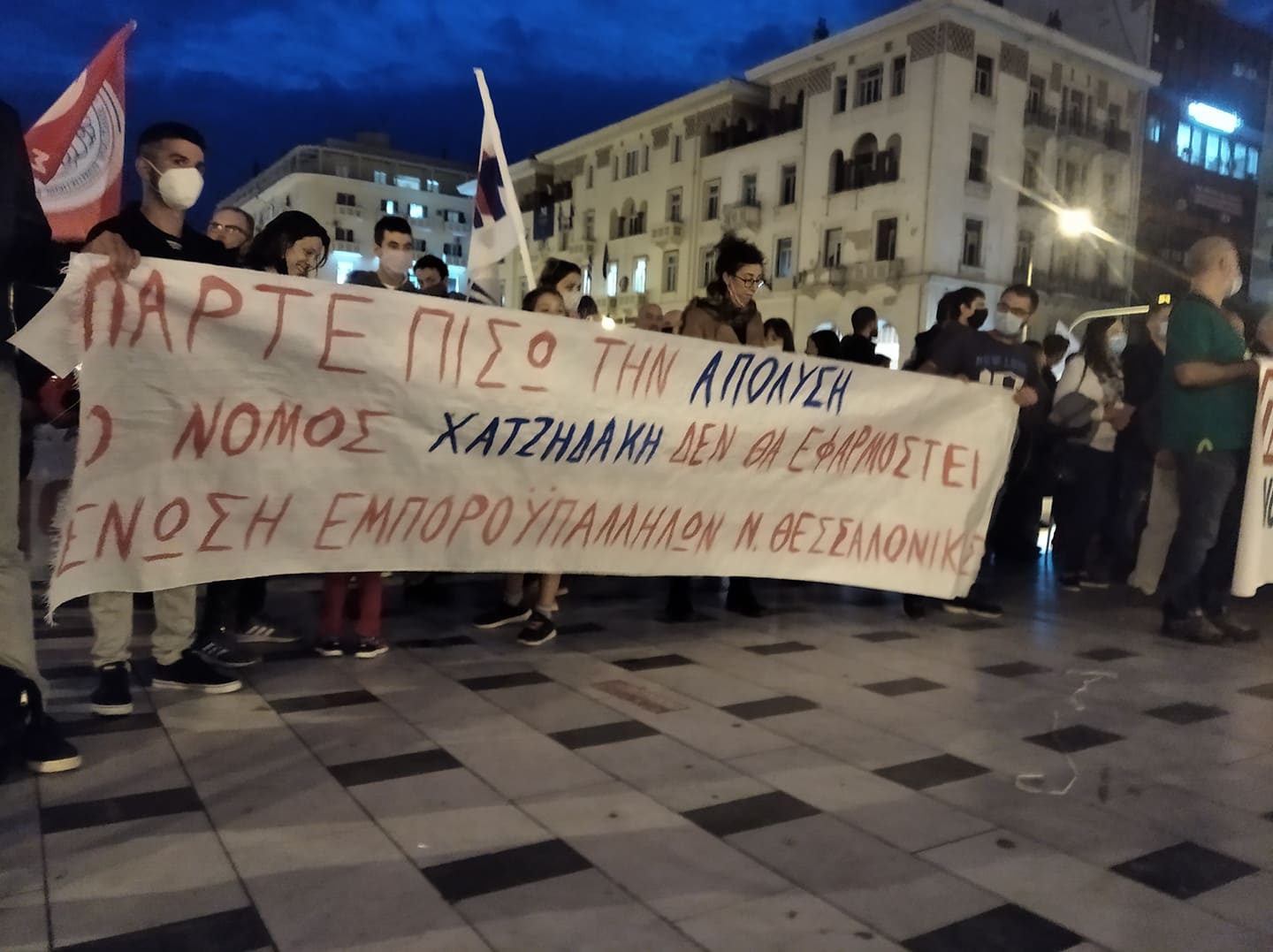 Εκατοντάδες εργαζόμενοι και εργαζόμενες της Θεσσαλονίκης ανταποκρίθηκαν στο κάλεσμα σωματείων της πόλης, ζητώντας την ανάκληση της απόλυσης του Νίκου Τζανετή, προέδρου του Συνδικάτου Εργατοϋπαλλήλων Μεταλλείων και Λατομείων Βορείου Ελλάδος (ΣΕΜΛΑ).