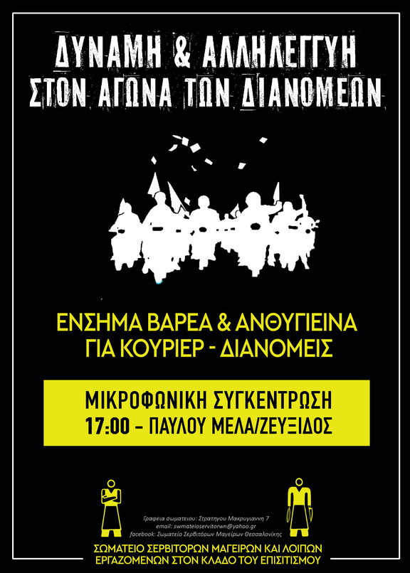 Το κάλεσμα του Σωματείου Σερβιτόρων Μαγείρων και λοιπών εργαζομένων στον κλάδο του επισιτισμού αναφέρει: