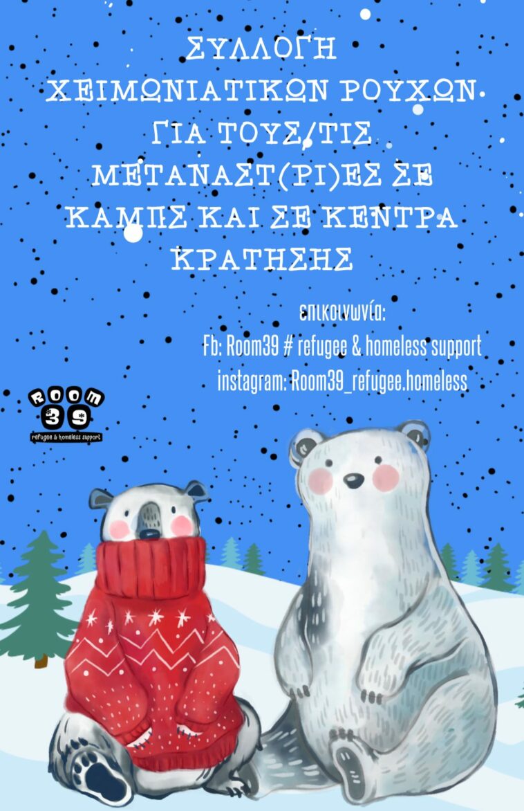 Κάλεσμα για συλλογή ρούχων για τους μετανάστες και τις μετανάστριες σε καμπς και κέντρα κράτησης απευθύνει η συλλογικότητα Room 39.