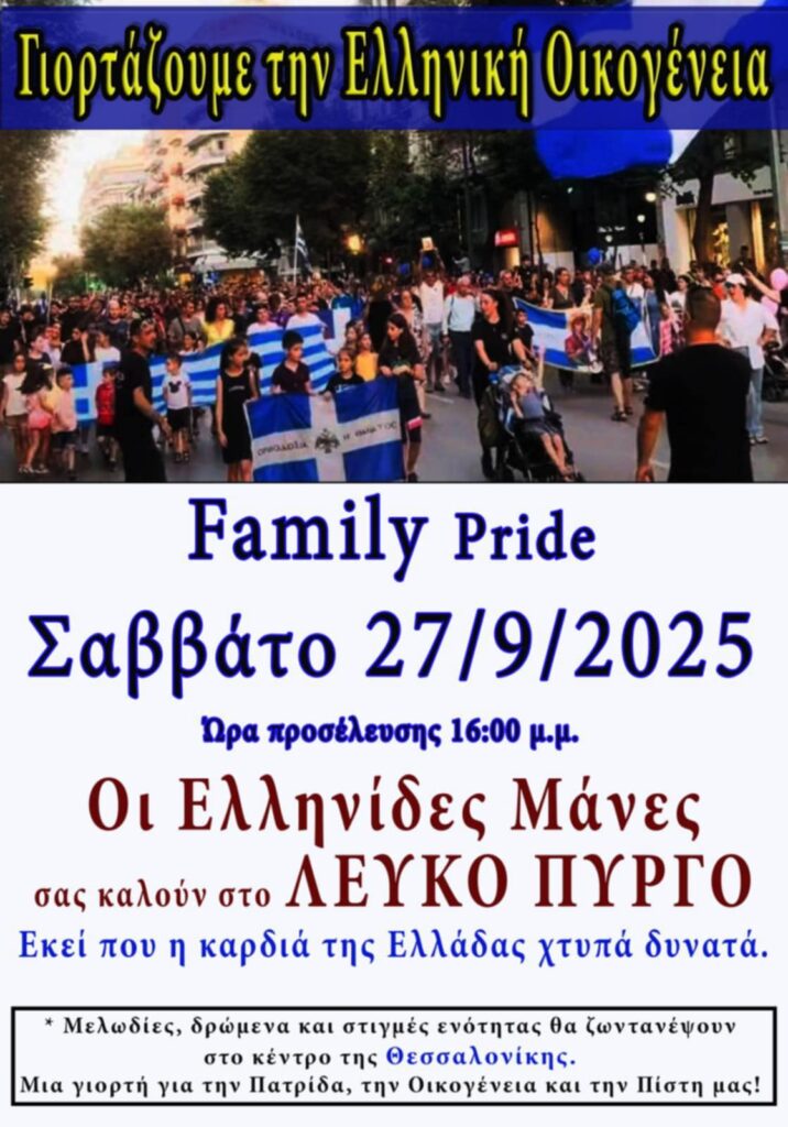Family Pride: «Ελληνική φυλή», «αντι-Woke αγώνας» και στο βάθος η… «χούντα των ΛΟΑΤΚΙ»