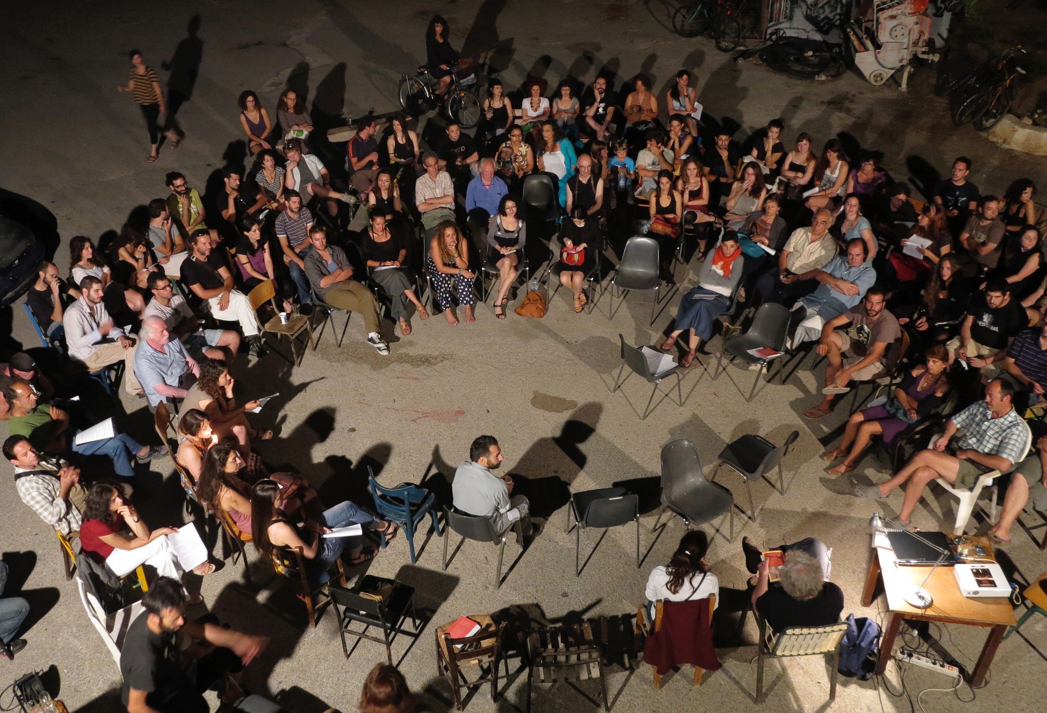 Να κάνω μια παρένθεση εδώ, το ζήτημα της ξενοδοχοποίησης και της τουριστικοποίησης των κοινωνικών σχέσεων αν και κεντρικό, δεν θα αναπτυχθεί από εμάς σήμερα. Στο βιβλίο ωστόσο μπορείτε να βρείτε το κείμενο του Αριτζ, για την εμπειρία της Βαρκελώνης, αλλά και το κείμενο της Γαλάτειας και της Μαρίας, οι οποίες περιγράφουν το βίωμα της τουριστικοποίησης, από την οπτική του ξεπεράσματός του, με τα εργαλεία του θεάτρου.