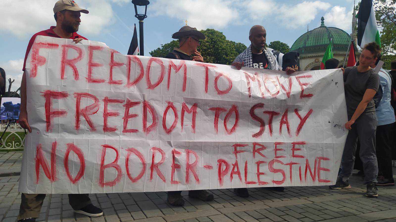 Συνεχίζουμε να αγωνιζόμαστε για μια ελεύθερη Γάζα. Αλληλεγγύη και Δύναμη στο λαό της Παλαιστίνης. Freedom to move – Freedom to stay. No border – Free Palestine