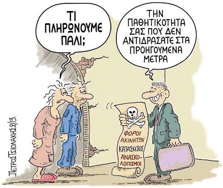 -της κλοπής του λαϊκού εισοδήματος μέσω φόρων και τελών στους λογαριασμούς των κοινωνικών αγαθών