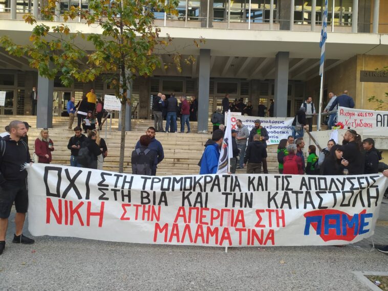 Η απόφαση επί της προσωρινής διαταγής αναμένεται το αργότερο το πρωί της Δευτέρας. Συγκέντρωση αλληλεγγύης έξω από τα Δικαστήρια Θεσσαλονίκης πραγματοποίησαν μέλη συλλογικοτήτων και οργανώσεων που στέκονται στο πλευρό των απεργών της «Μαλαματίνα» όλο αυτό το διάστημα.