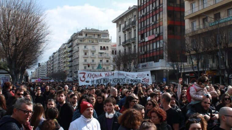 Τους τελευταίους μήνες, ως ομάδα Τ57 Θεσσαλονίκης επιχειρούμε να επανατοποθετούμε στον δημόσιο χώρο το ζήτημα της δολοφονίας των 57 συνανθρώπων μας που έχασαν τη ζωή τους στα Τέμπη, μέσω ενός πλήθους διαφορετικών δράσεων. Με μοίρασμα χιλιάδων κειμένων και μικροφωνικές συγκεντρώσεις σε κεντρικά σημεία σημεία που καλούσανε στην χθεσινή επέτειο και στα επερχόμενα δικαστήρια στις 23/03/26, με πορεία που καλέσαμε περίπου έναν μήνα πριν την ημερομηνία της επετείου, με παρεμβάσεις στο Νέο Σιδηροδρομικό Σταθμό Θεσσαλονίκης και στα Προξενεία Ισπανίας και Σερβίας με μοίρασμα κειμένων αντίστοιχα. Στόχος μας ένας: Αυτό το έγκλημα να μην ξεχαστεί.