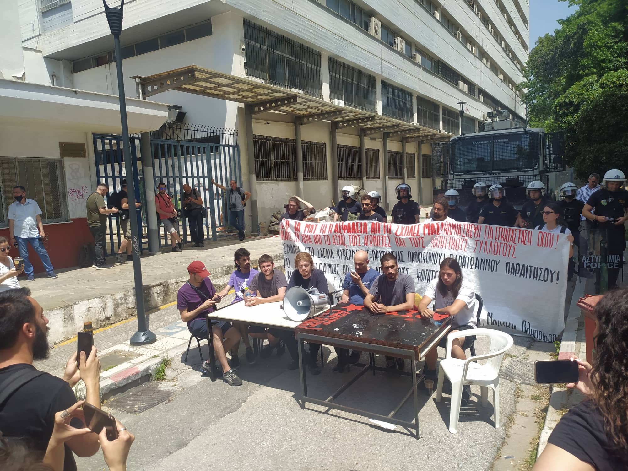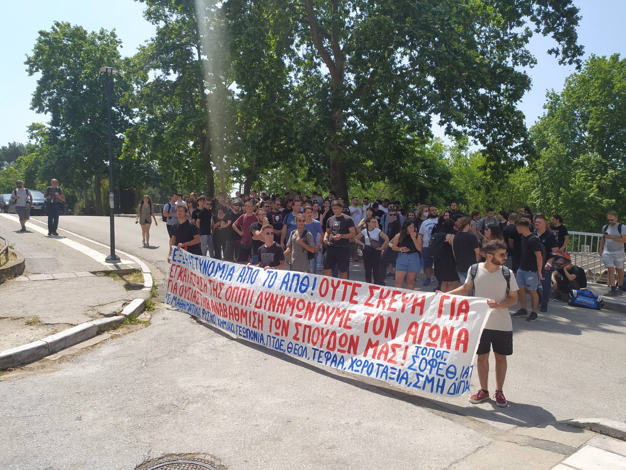Νέα συγκέντρωση των Φοιτητικών Συλλόγων πραγματοποιήθηκε το πρωί της Παρασκευής στο ΑΠΘ ενάντια στην αστυνομοκρατία και τις σκηνές άγριας καταστολής που επικρατούν τις τελευταίες εβδομάδες στους χώρους του πανεπιστημίου.