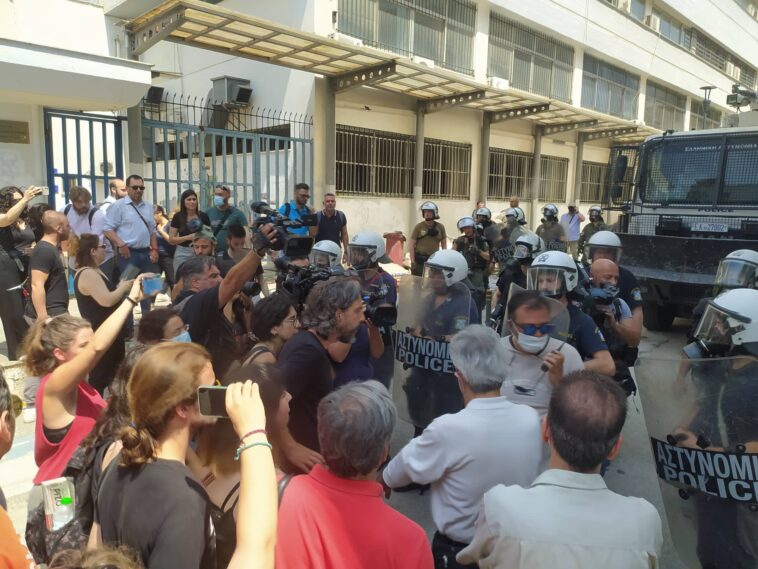 Από νωρίς το πρωί έξω από τα δικαστήρια πραγματοποιήθηκε συγκέντρωση αλληλεγγύης στους συλληφθέντες.