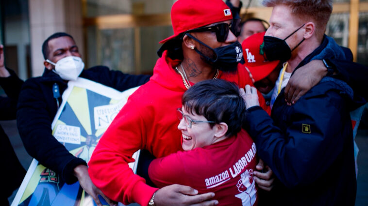 Ωστόσο σε μια αποθήκη της «Amazon» στη Νέα Υόρκη οι εργαζόμενοι με ποσοστό 55% ψήφισαν υπέρ της ένταξής τους στο Εργατικό Σωματείο, που έχει πλέον το δικαίωμα να διαπραγματευτεί μια σύμβαση εργασίας με την πολυεθνική για τους περίπου 8.000 εργαζόμενους στην αποθήκη του Staten Island.
