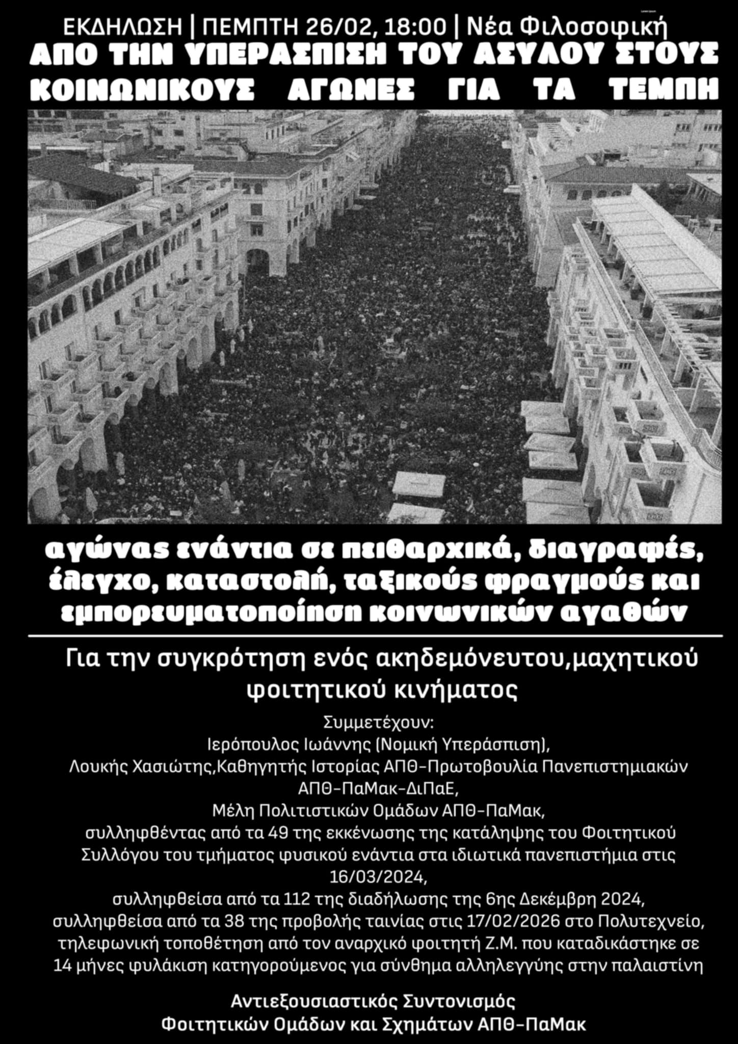 «Από την υπεράσπιση του ασύλου στους κοινωνικούς αγώνες για τα Τέμπη»