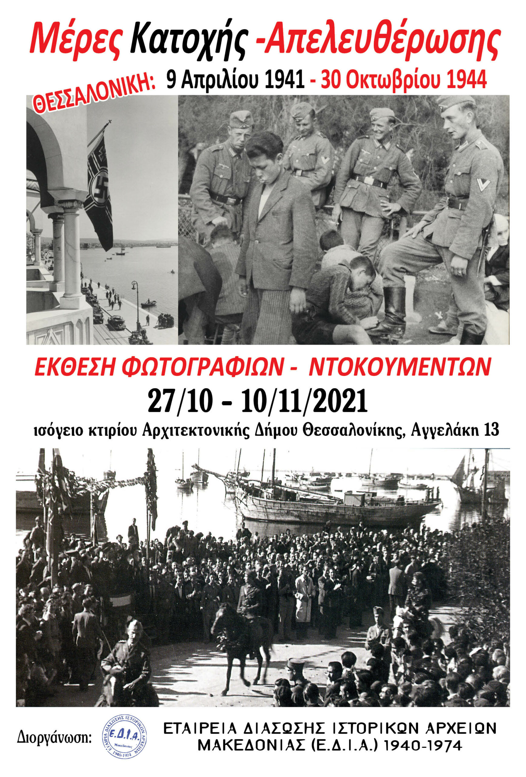 Έκθεση αρχειακού υλικού και τεκμηρίων για την απελευθέρωση της Θεσσαλονίκης από τον ναζιστικό ζυγό διοργανώνει η Εταιρεία Διάσωσης Ιστορικών Αρχείων Μακεδονίας (Ε.Δ.Ι.Α. 1940-1974).