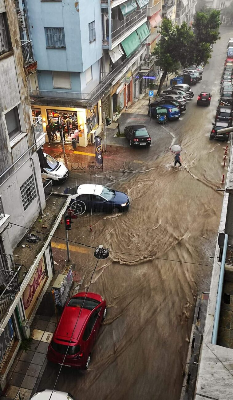 Μέσα σε λίγα λεπτά οι κεντρικοί δρόμοι της πόλης μετατράπηκαν σε ποτάμια ενώ δεκάδες είναι οι αναφορές για εγκλωβισμούς οχημάτων καθώς και κλήσεις για άντληση υδάτων.