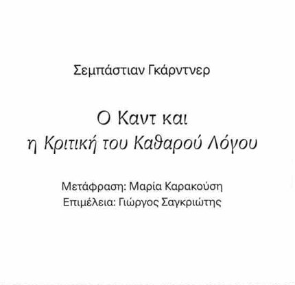 Σεμπάστιαν Γκάρντνερ, Ο Καντ και η Κριτική του Καθαρού Λόγου, Νήσος 2024, σελ. 544 (μετάφραση: Μαρία Καρακούση, επιμέλεια: Γιώργος Σαγκριώτης)