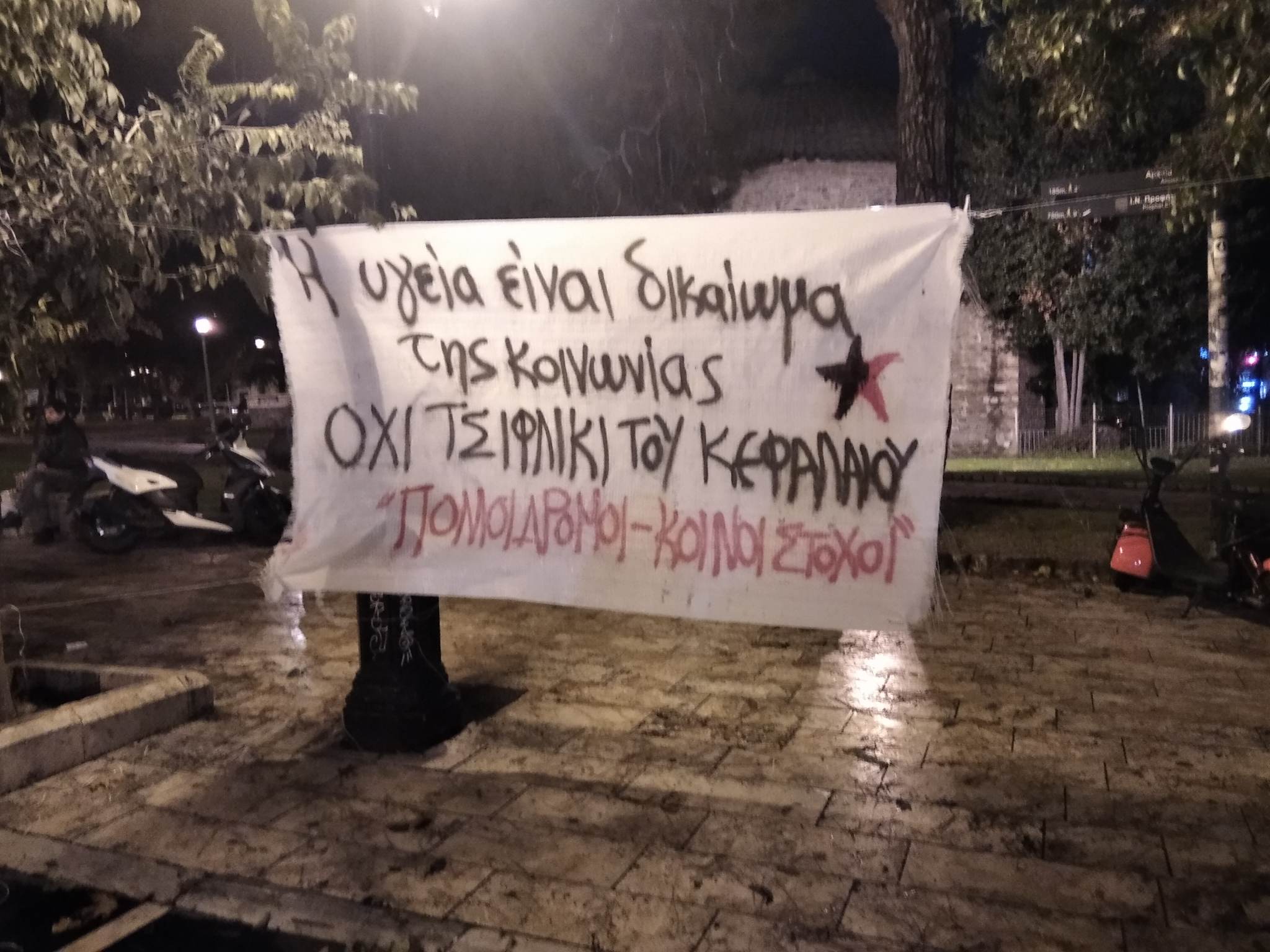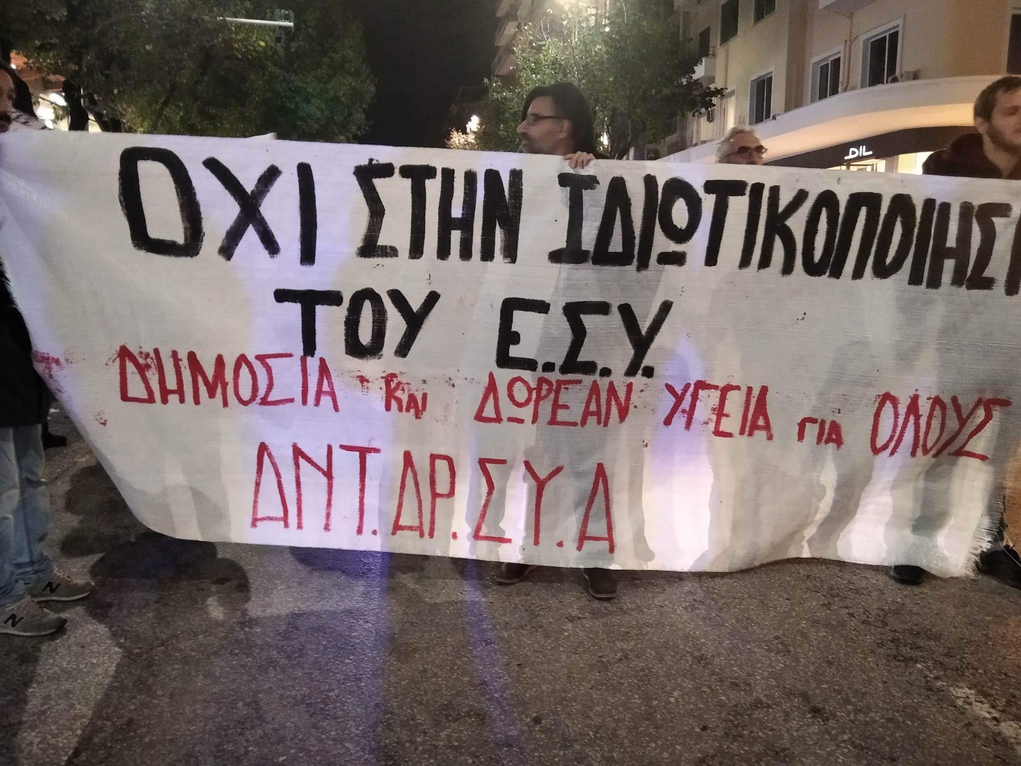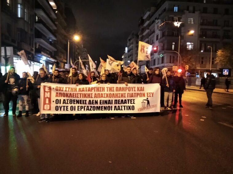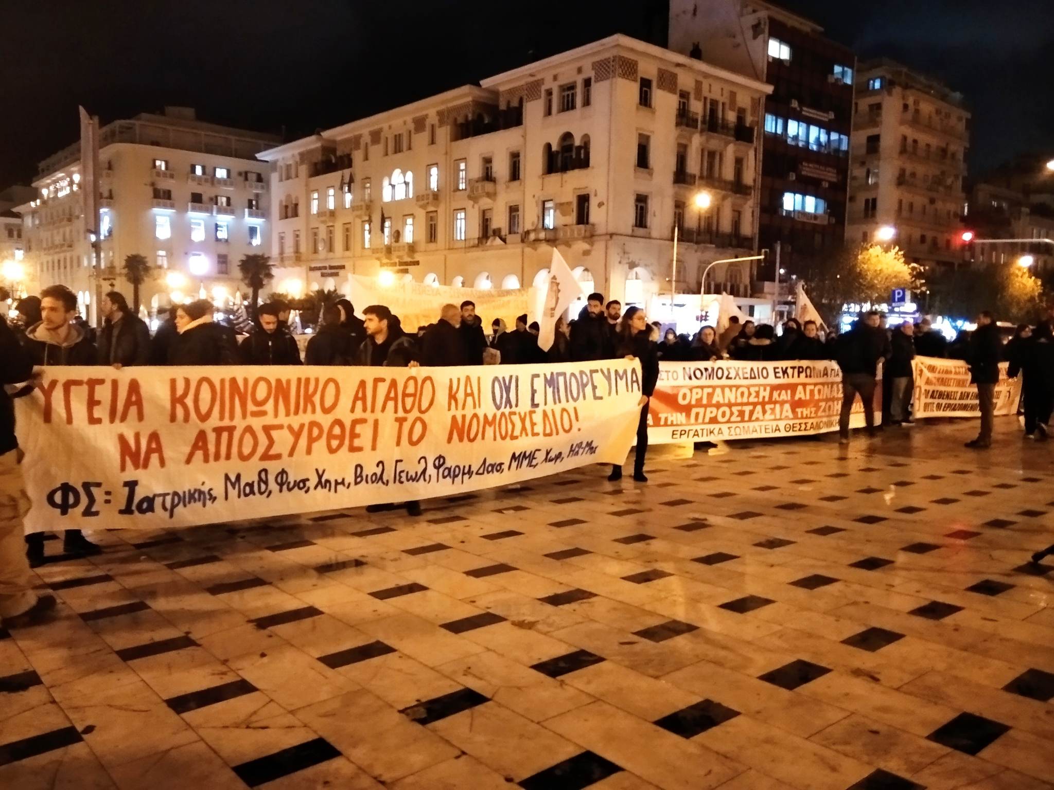 Συγκέντρωση και πορεία διαμαρτυρίας ενάντια στη διάλυση του ΕΣΥ και την κατάργηση της πλήρους και αποκλειστικής απασχόλησης των νοσοκομειακών γιατρών πραγματοποιήθηκε στη Θεσσαλονίκη μετά από κάλεσμα της ΕΝΙΘ με τη συμμετοχή εργατικών σωματείων και πολιτικών συλλογικοτήτων.
