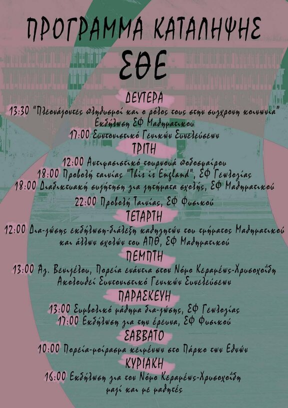 Αυτόν τον αγώνα, όπως και όλους τους άλλους δεν τους δίνουμε για εμάς, αλλά για όλη την κοινωνία. Τα κεκτημένα του αγώνα αυτού, τα απολαμβάνουν χιλιάδες άνθρωποι τις τελευταίες ημέρες στην πλατεία Χημείου. Ένα ανοιχτό δημόσιο πανεπιστήμιο, χωρις αστυνομία, γεμάτο ανθρώπους και ζωή, στο οποίο χωράνε όλοι, όλες και όλα.