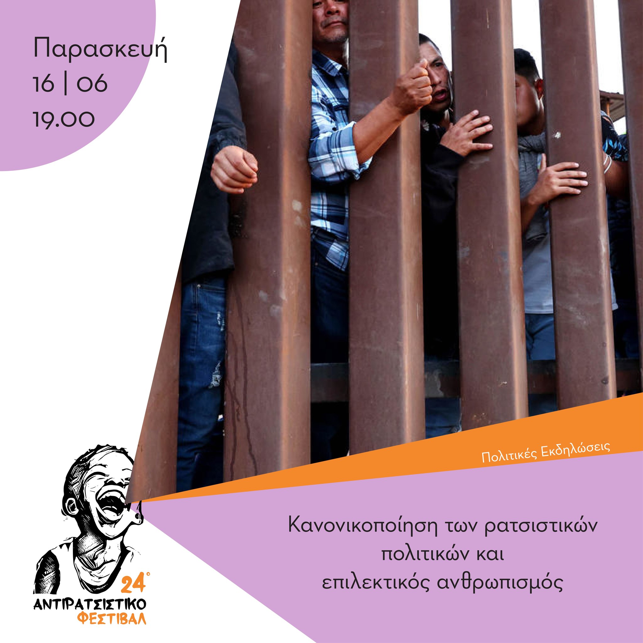 Στο πλαίσιο του Αντιρατσιστικού Φεστιβάλ Θεσσαλονίκης (15,16,17 Ιουνίου) θα πραγματοποιηθεί συζήτηση με θέμα την «Κανονικοποίηση των ρατσιστικών πολιτικών και επιλεκτικός ανθρωπισμός» με ομιλητές