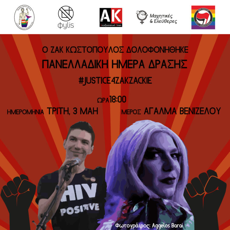 Με κεντρικό σύνθημα «Ο Ζακ Κωστόπουλος δολοφονήθηκε», δεκάδες συλλογικότητες του ΛΟΑΤΚΙ, φεμινιστικού, αντιρατσιστικού και αντιφασιστικού χώρου, εργατικά σωματεία, φοιτητικοί σύλλογοι και πολιτικοί φορείς καλούν σε συμμετοχή στην Πανελλαδική Ημέρα Δράσης την Τρίτη, 3 Μαΐου, καθώς μπαίνει στην τελική ευθεία η δίκη στο Μεικτό Ορκωτό Δικαστήριο της Αθήνας.