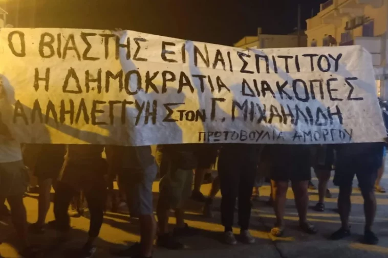 Σύμφωνα με την ιστοσελίδα cycladeslive.gr, προχθές βράδυ στο λιμάνι των Κατάπολων αναρτήθηκε πανό, που έγραφε χαρακτηριστικά το εξής: «Ο Βιαστής είναι σπίτι του. Η Δημοκρατία διακοπές. Αλληλεγγύη στο Γ. Μιχαηλίδη».
