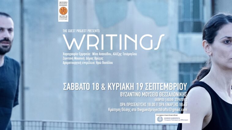 Το Writings είναι μια παράσταση σύγχρονου χορού με 2 χορευτές και έναν μουσικό επί σκηνής και βασίζεται στην ιδέα της επιστολής, της αφιέρωσης, της γραφής μέσω της κίνησης. Επιστολές θαυμασμού, επιστολές, έρωτα, φιλίας, ποιητικές φανταστικές επιστολές χαράσσονται στο χώρο και τον χρόνο στο “εδώ και τώρα” χρησιμοποιώντας κίνηση αντί για λέξεις.